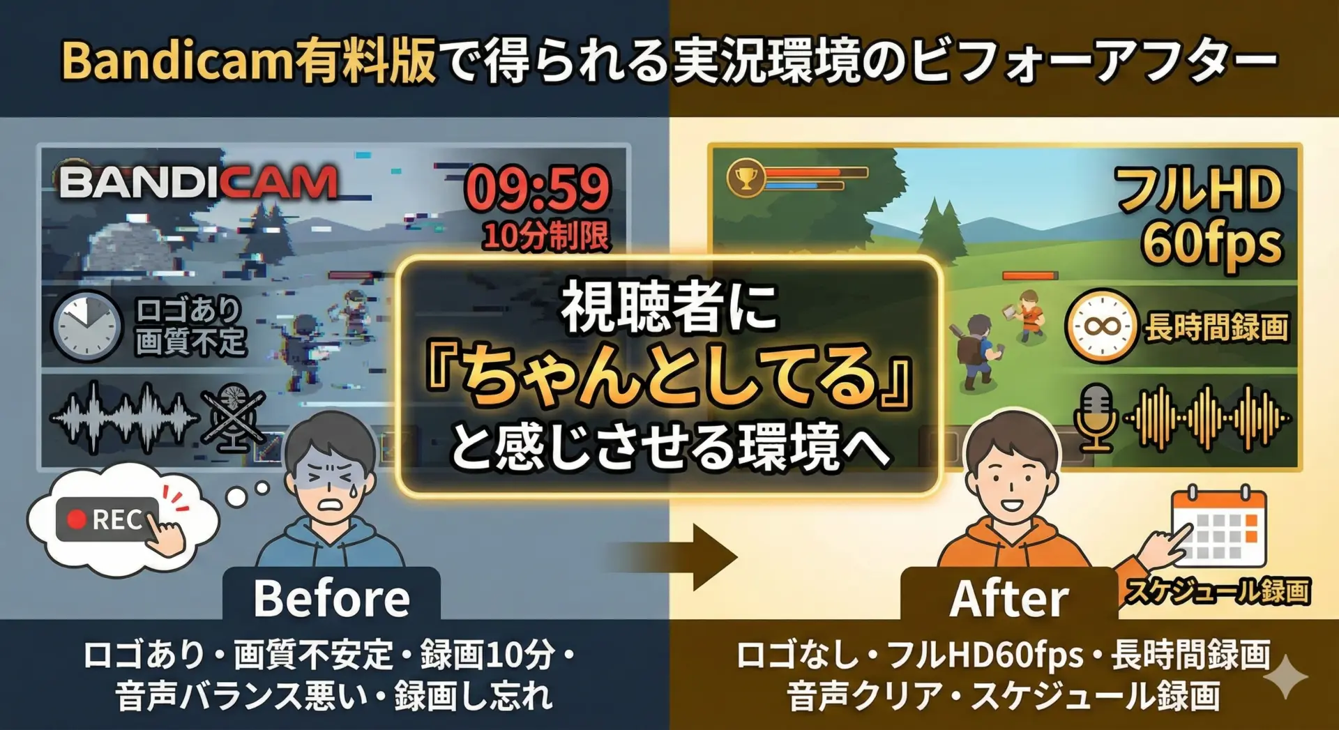 この記事では、Bandicam有料版を使って「ロゴなし高画質」を武器に、YouTube実況の見栄えを一気に底上げする具体的な設定と運用ノウハウを、すべてステップ付きで解説します。