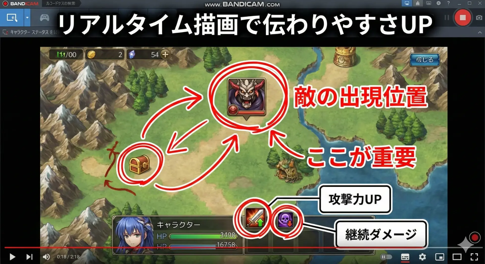 Bandicamの描画機能(アノテーション)を使えば、録画中に画面上に直接、