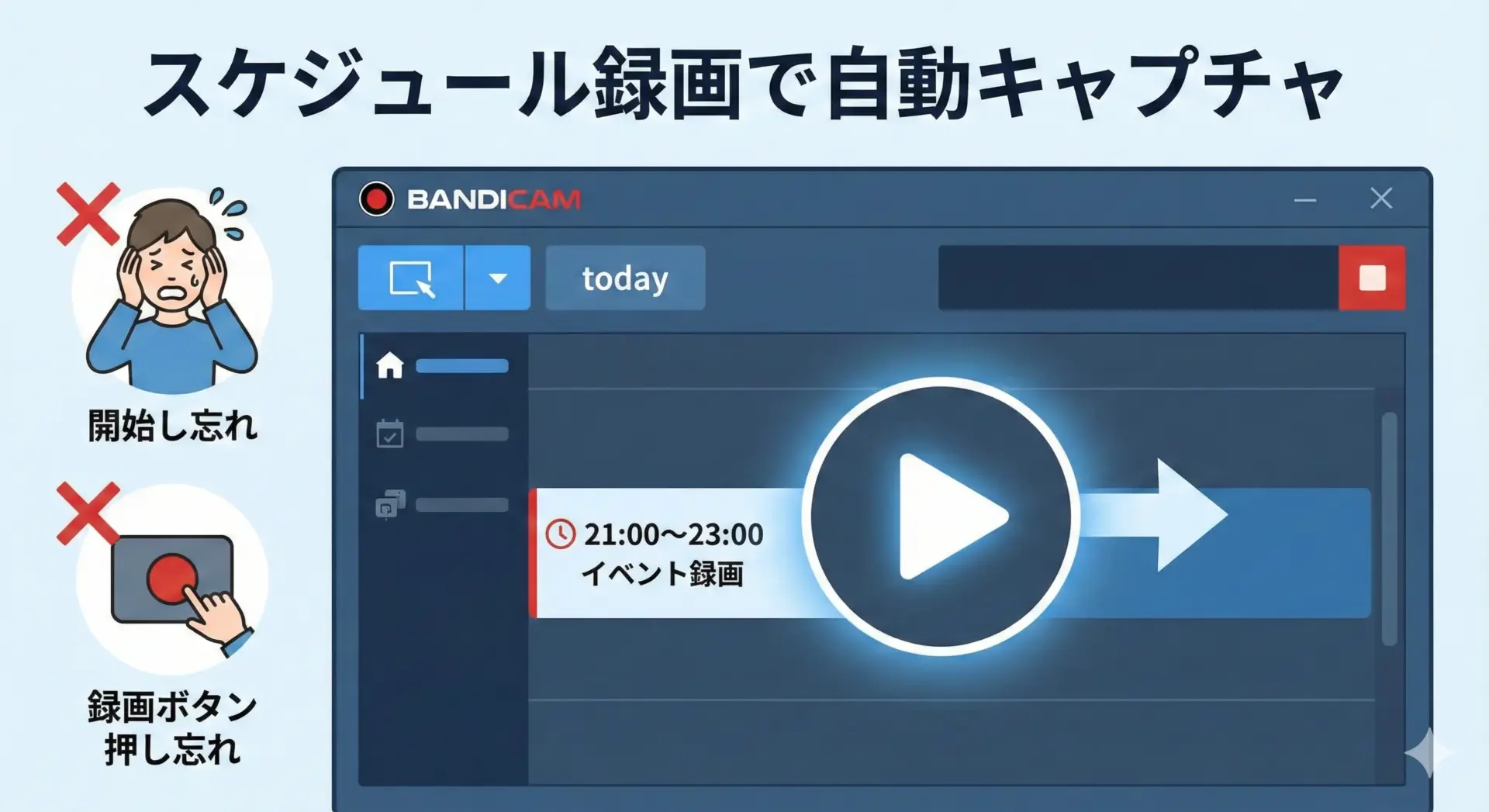 あらかじめ時間と録画モードを設定しておけば、「録画ボタンを押し忘れて全部撮れてなかった…」という致命的ミスを防げるので、大事な企画ほど活用する価値があります。