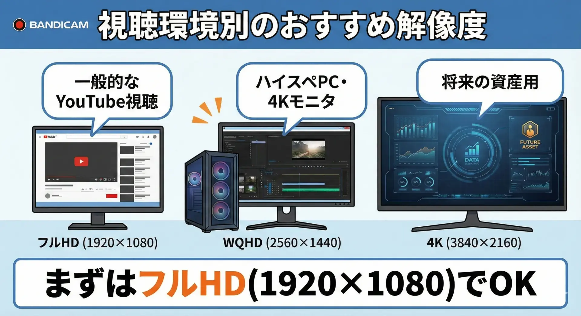 4K対応(3840×2160)も可能ですが、PCスペックとストレージ負荷が一気に上がるので、