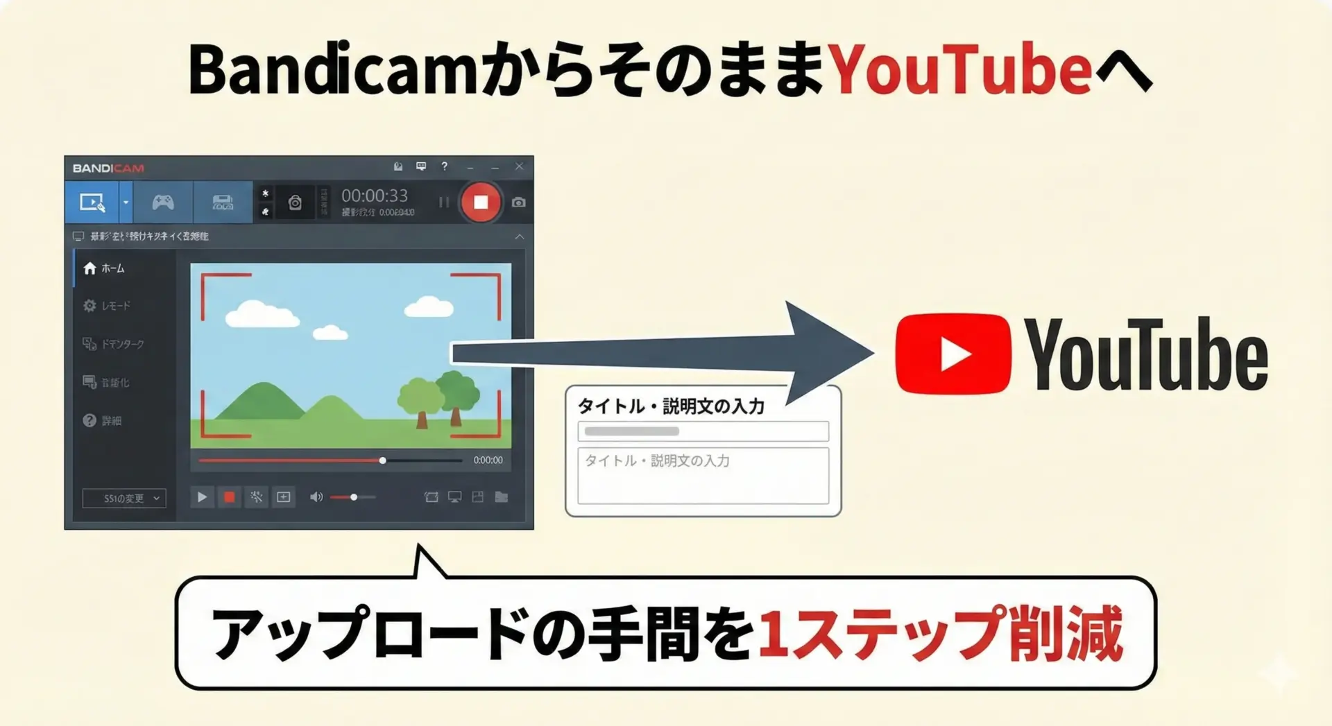 などでは、Bandicamから直接YouTubeにアップロードしてしまうと、投稿の手間をかなり減らせます。