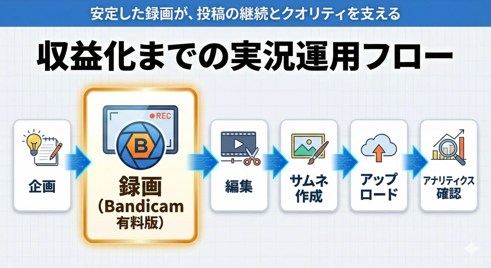 「メインはしっかり編集、サブはBandicamから即アップ」という運用は、収益化後のチャンネル拡大を見据えても効率的です。