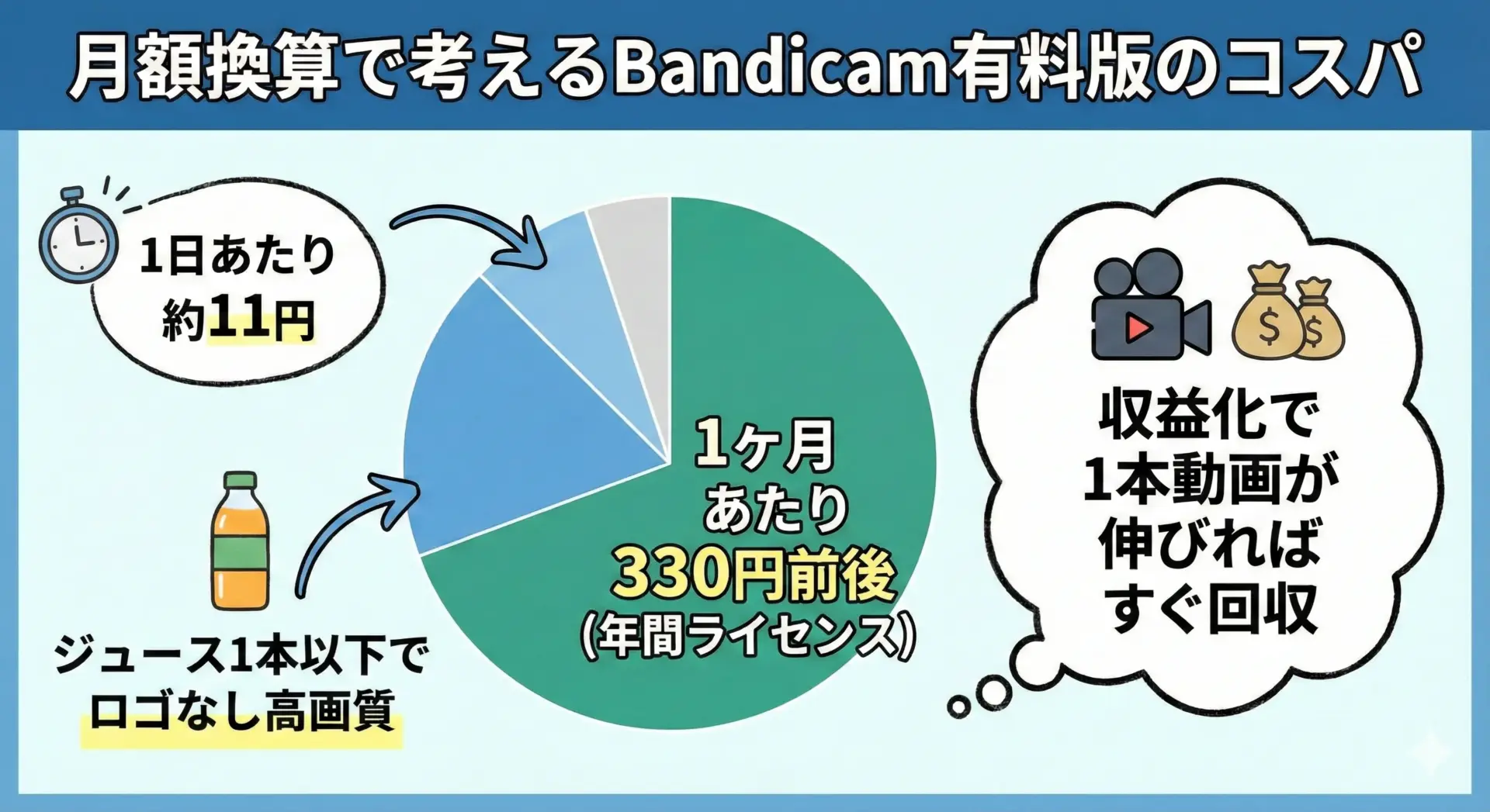 Bandicam有料版は、「高機能=高額ソフト」ではありません。