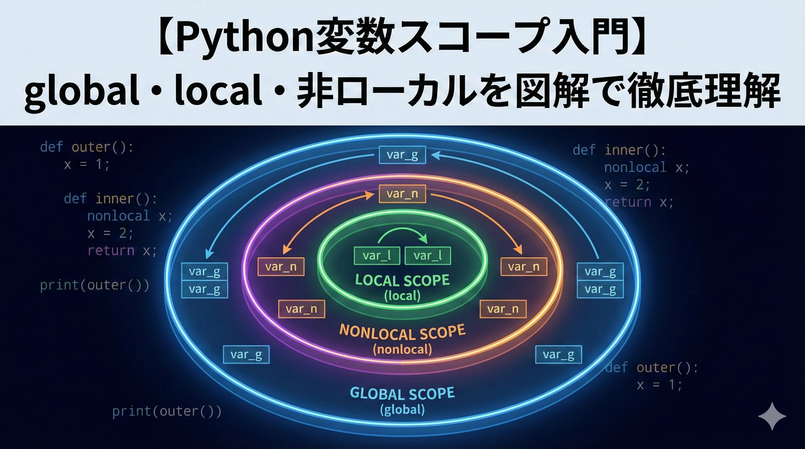 【Python】変数スコープ入門:global・local・非ローカルを図解で徹底理解