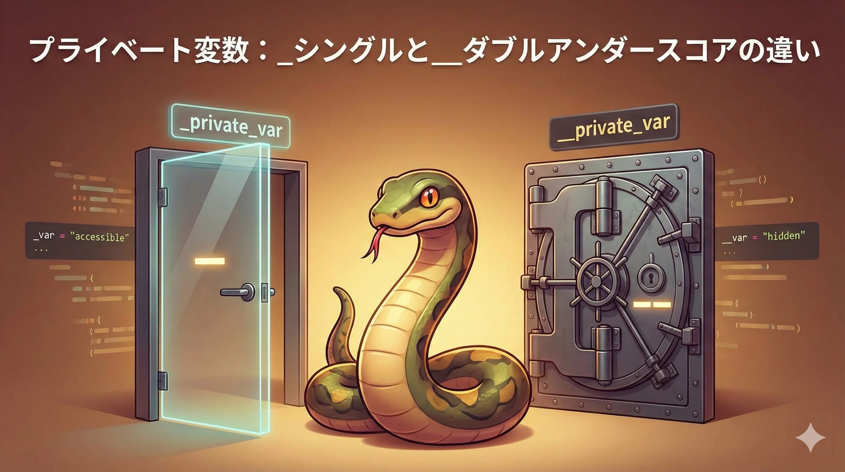 Pythonでは他言語のような厳密なアクセス修飾子はありませんが、アンダースコアを使うことで「この変数は…