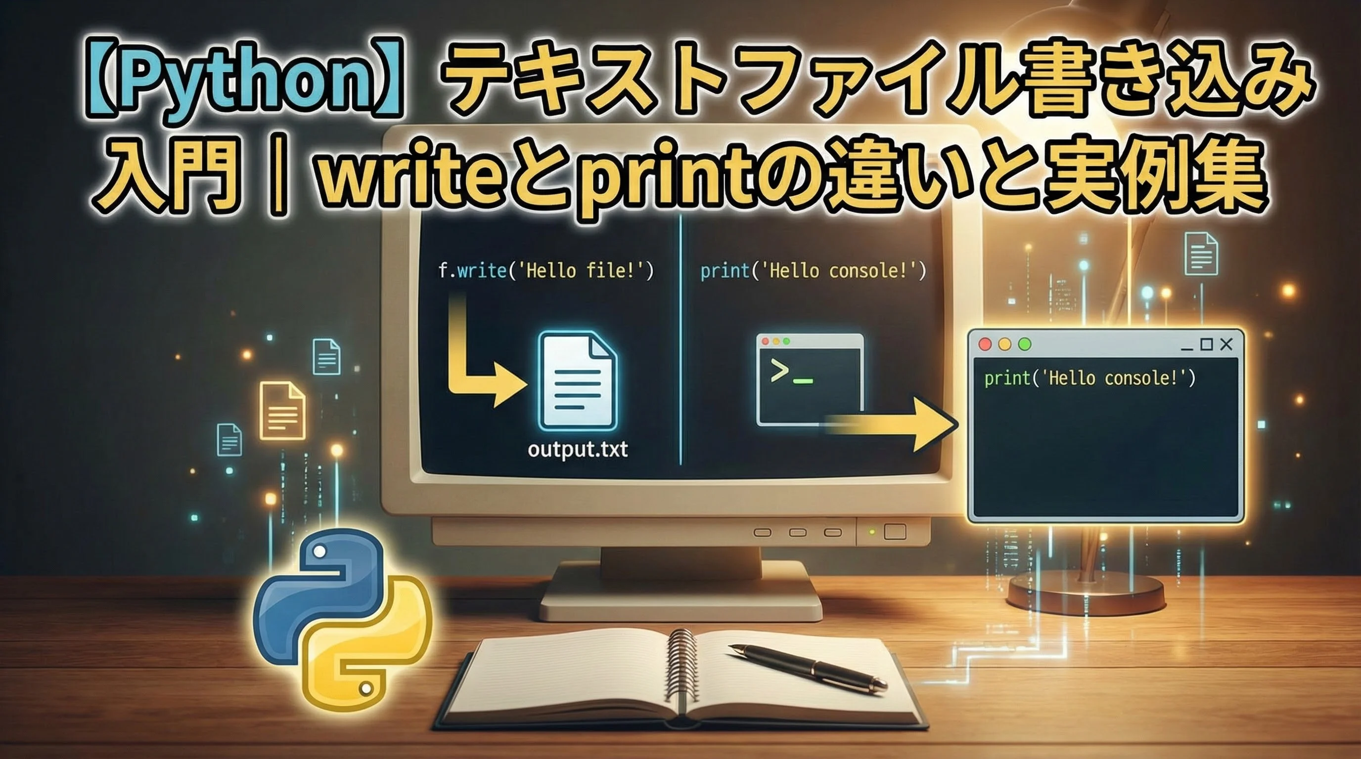 【Python】テキストファイル書き込み入門|writeとprintの違いと実例集