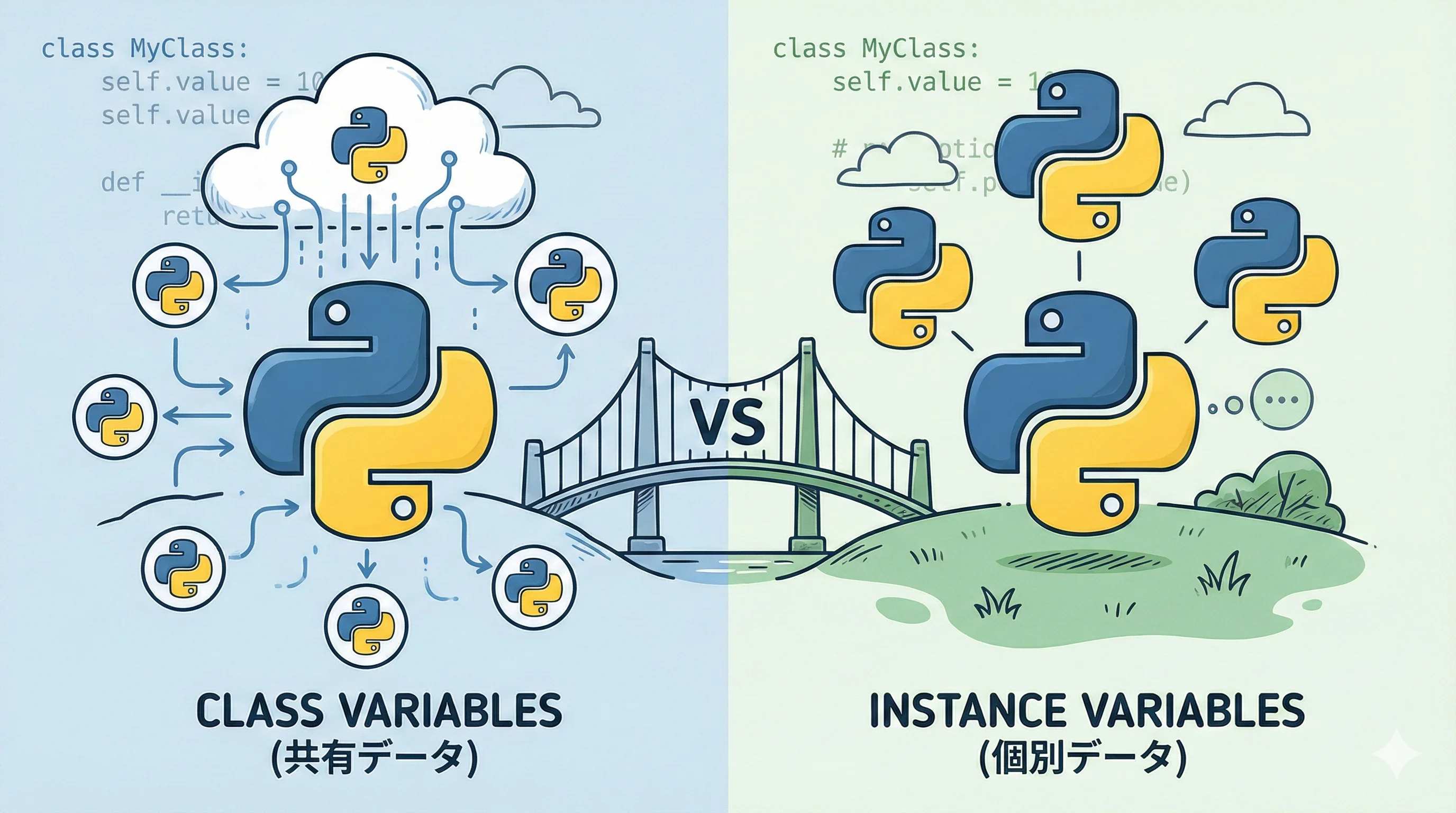 【Python】クラス変数 vs インスタンス変数の違いと使い分けを解説