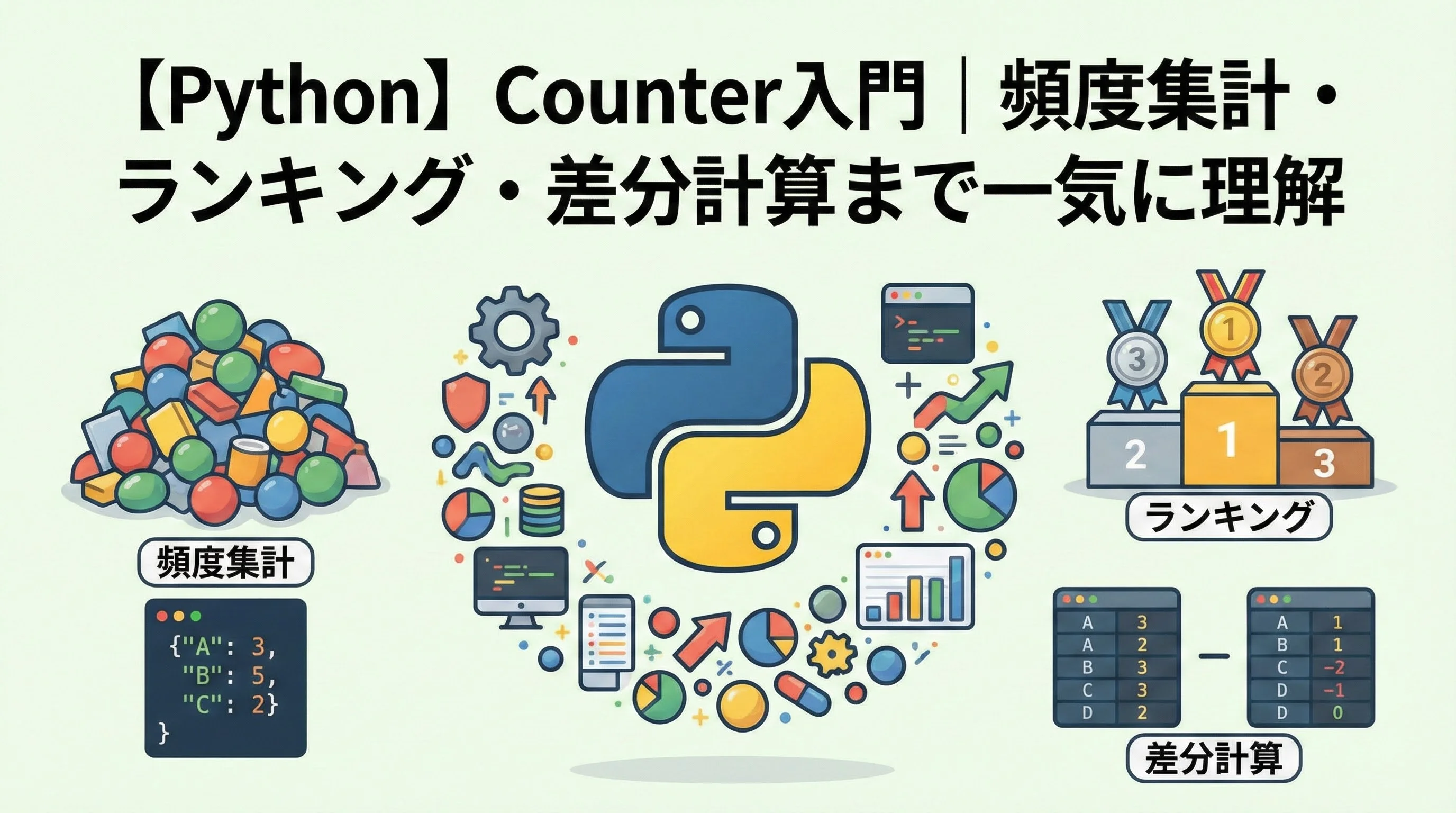 【Python】Counter入門|頻度集計・ランキング・差分計算まで一気に理解