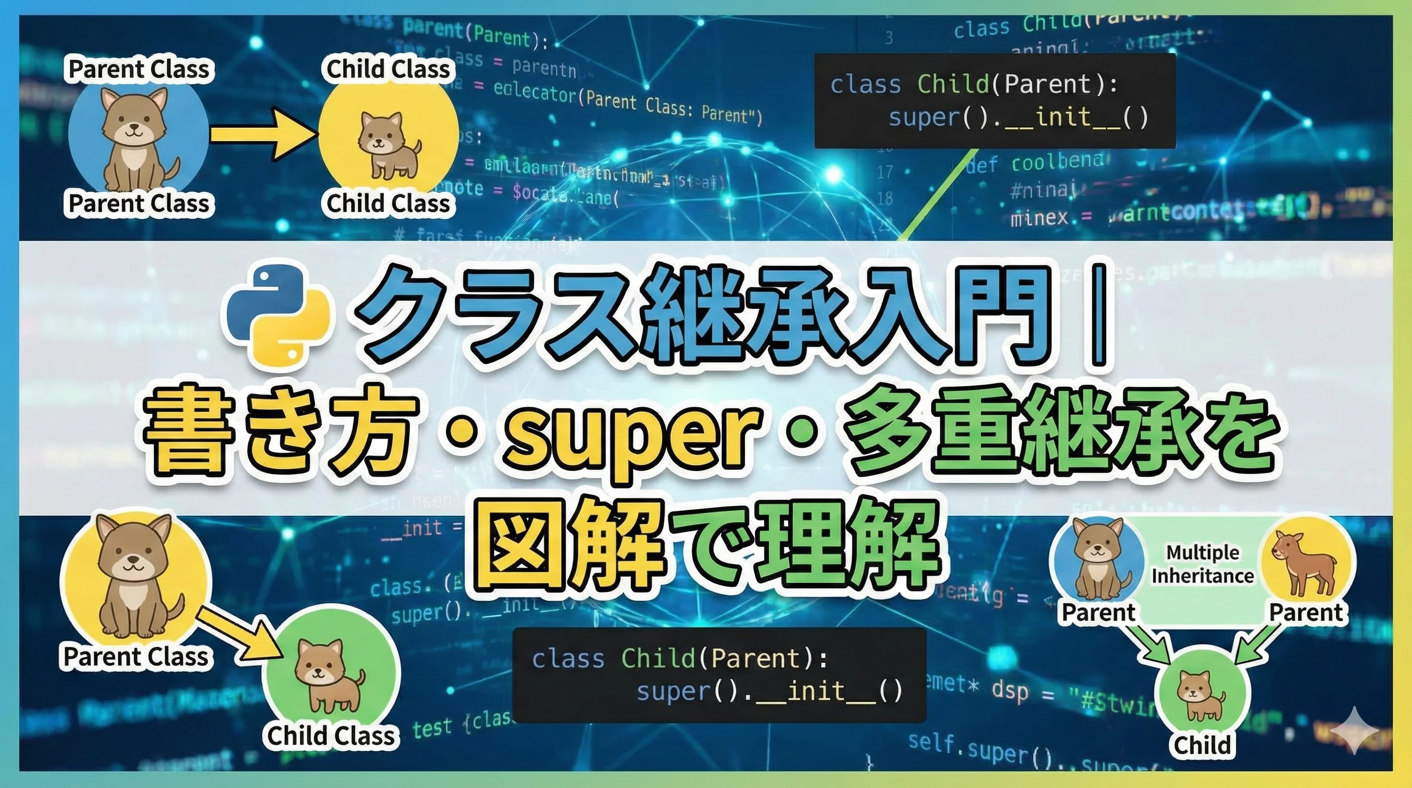 Pythonのクラス継承入門|書き方・super・多重継承を図解で理解