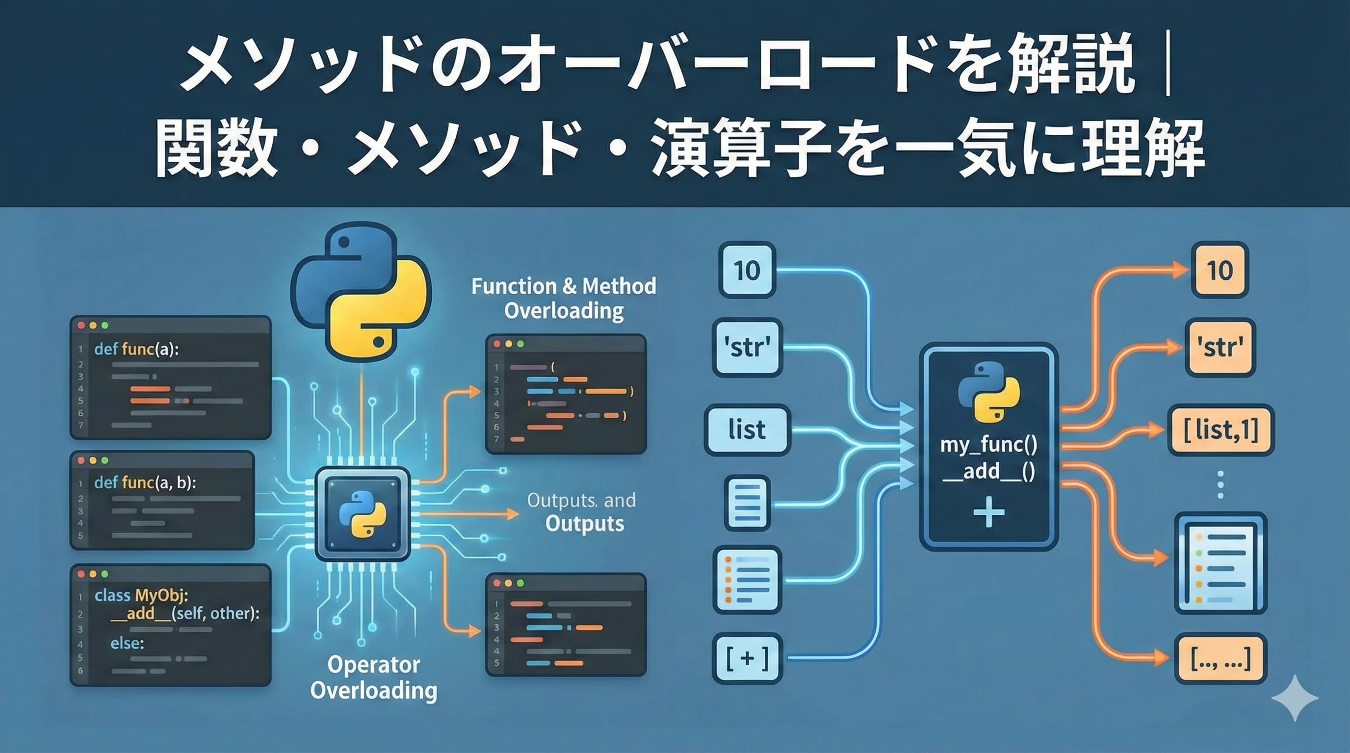 【Python】メソッドのオーバーロードを解説|関数・メソッド・演算子を一気に理解