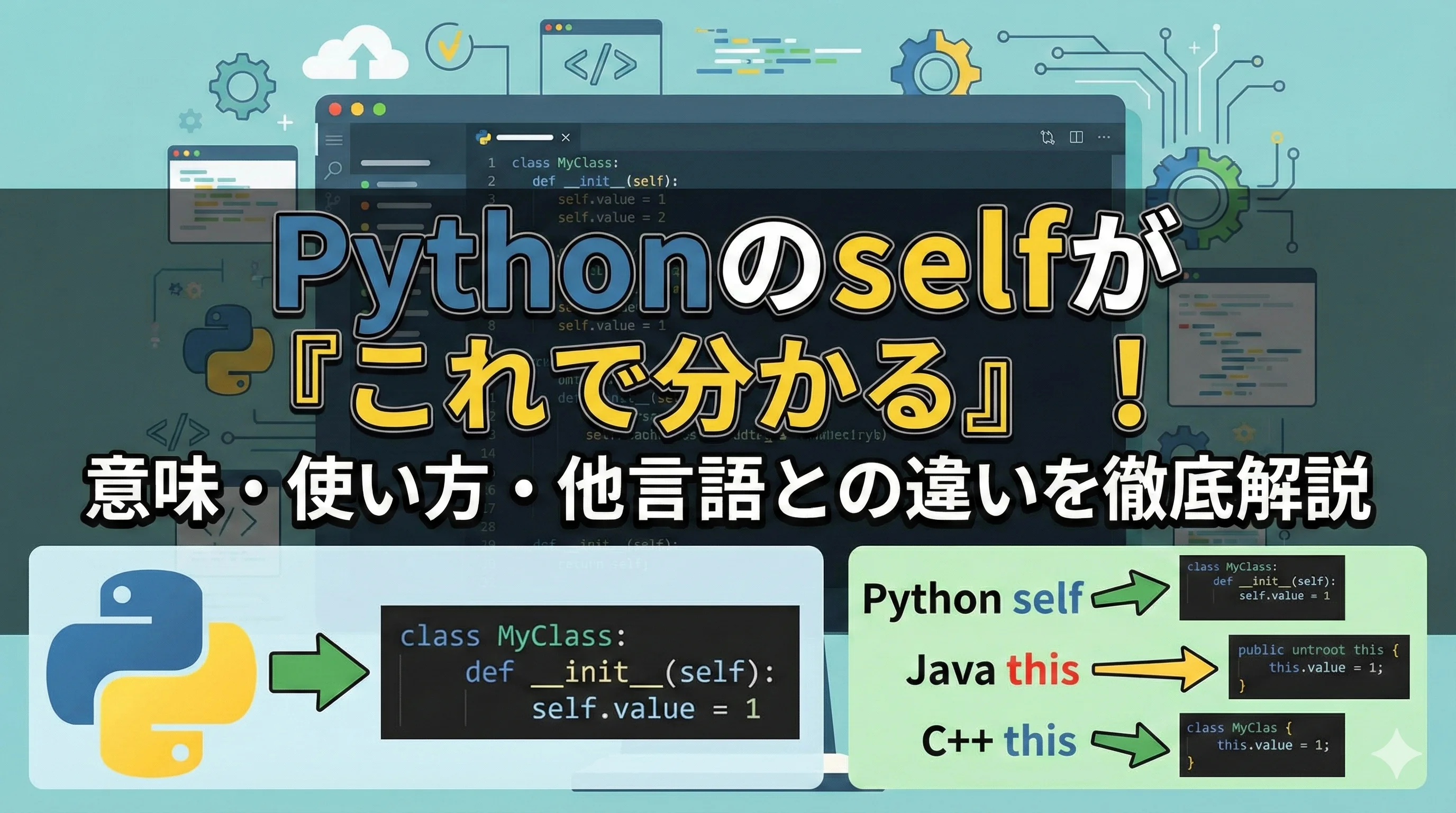 Pythonでクラスを学び始めると、必ず登場するのがselfです。 多くの人が「thisと何が違うのか」「なぜ毎回…