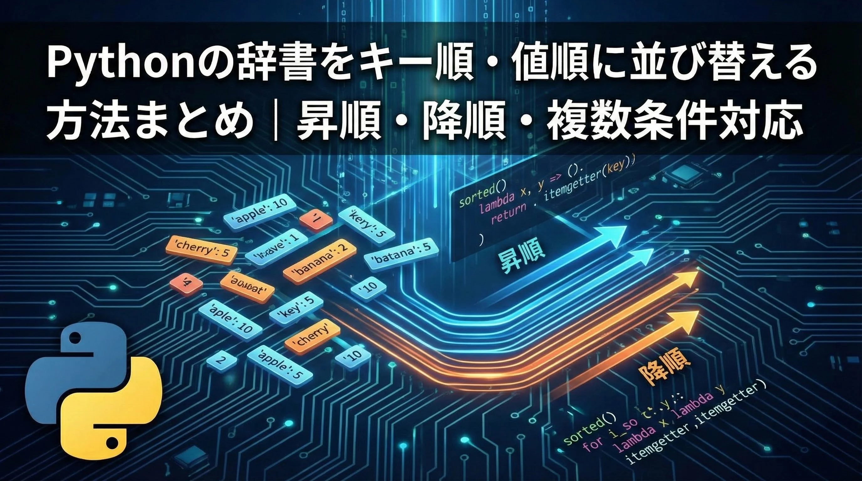 Pythonでは辞書(dict)を使う場面が多いですが、「キー順に並べ替えたい」「値順にランキングしたい」と感…