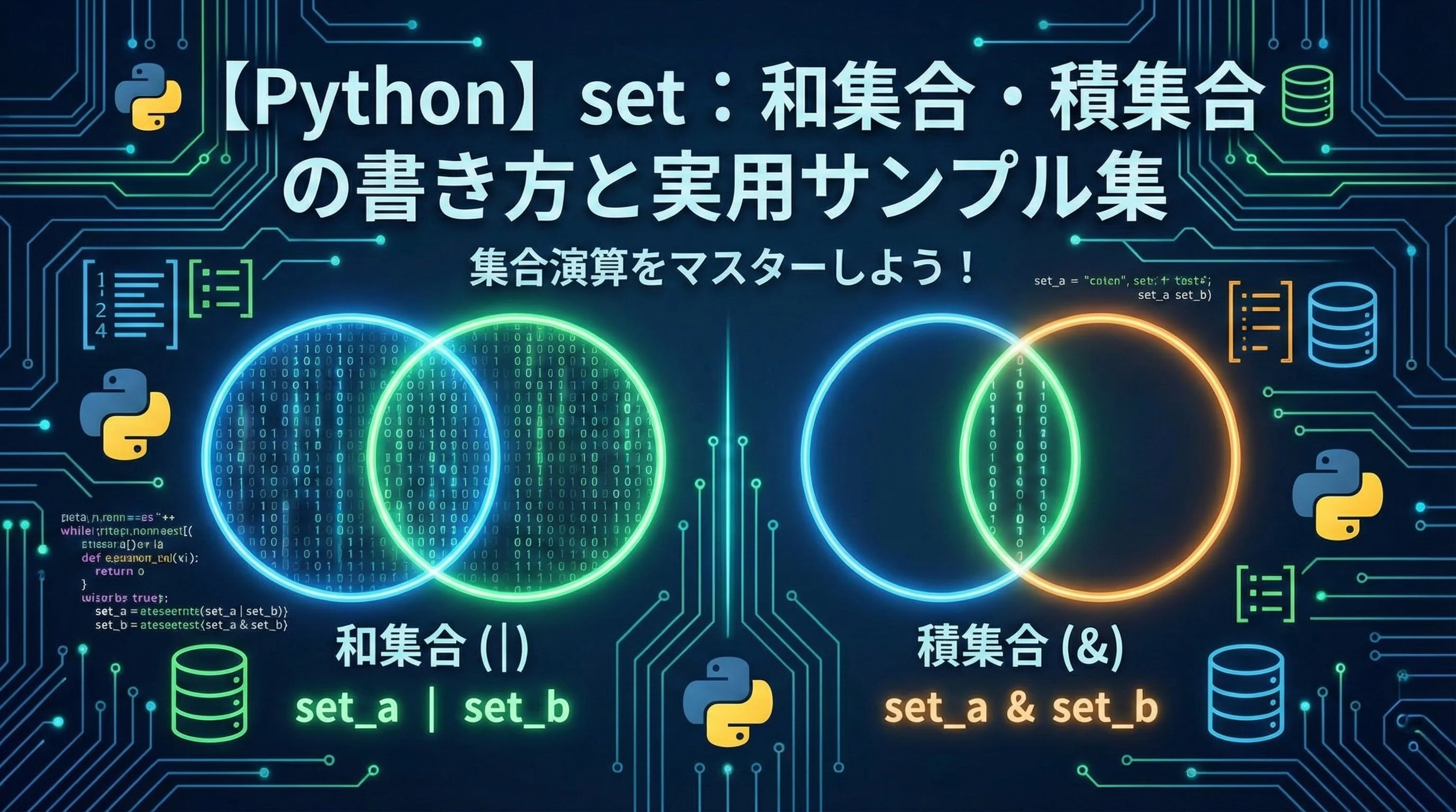 Pythonのsetは、データの重複排除や「共通しているもの」「どちらか一方にだけあるもの」を素早く調べたい…