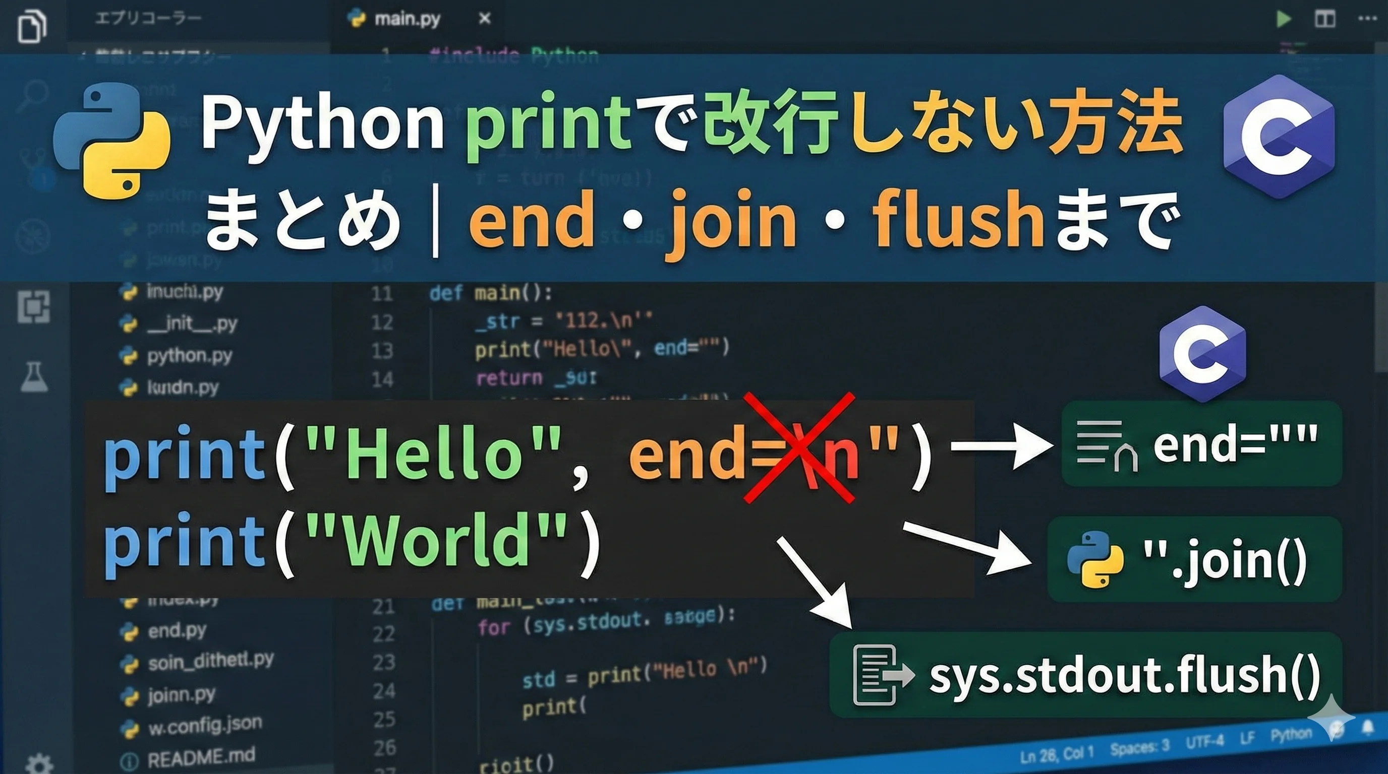 Pythonのprintで改行させない方法まとめ|end・join・flushまで