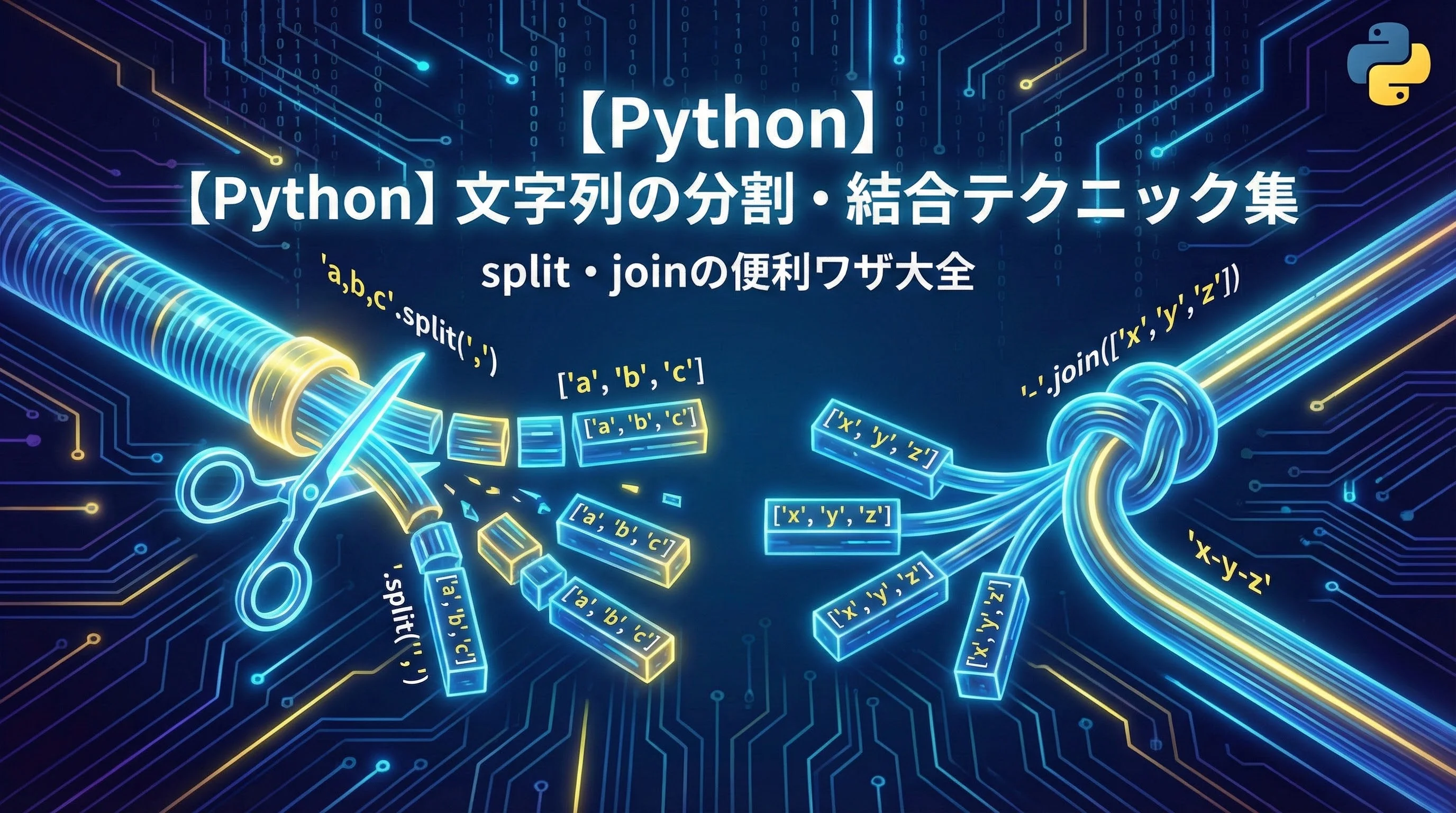 Pythonでテキストデータを扱うとき、文字列の分割と結合は必須テクニックです。 本記事では、基本のsplit…