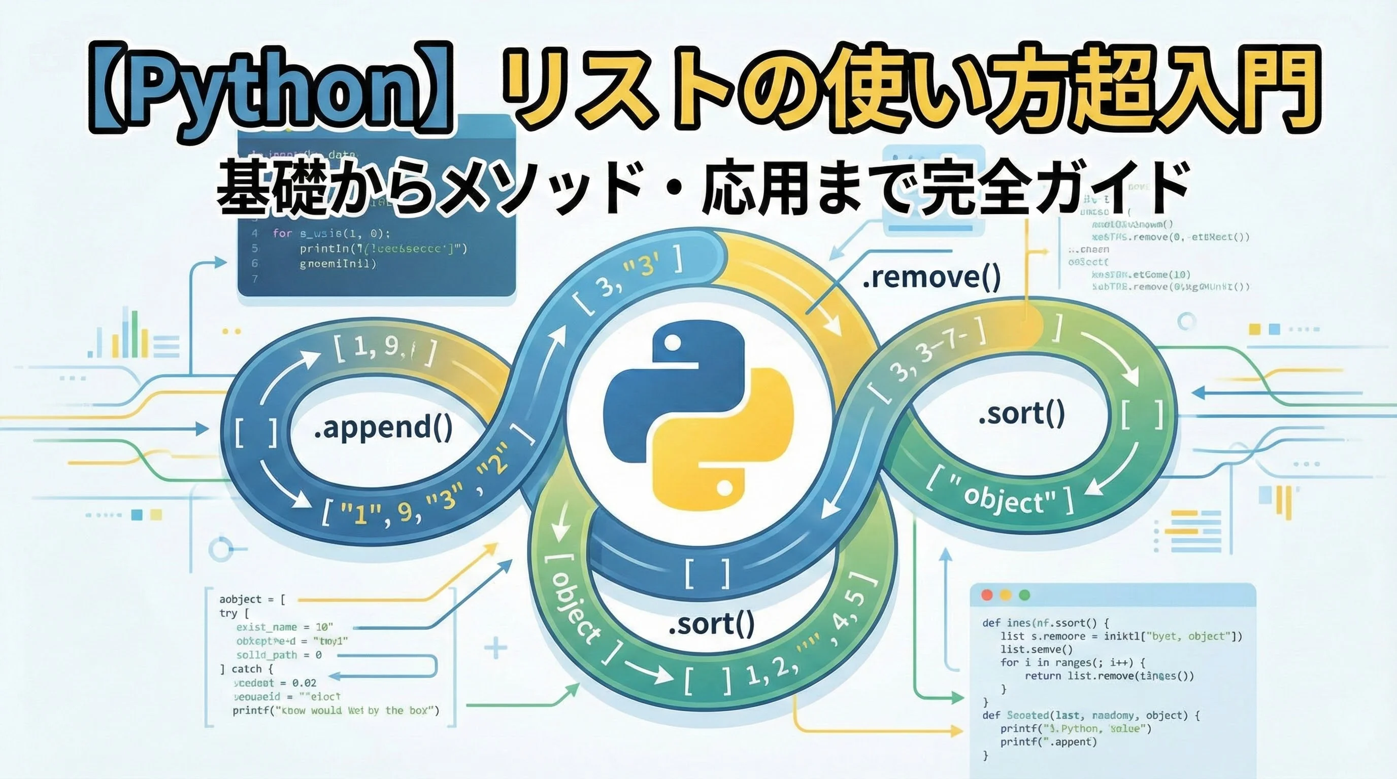 Pythonのリストは、複数の値を1つにまとめて管理できる、とても重要なデータ構造です。 本記事では、リス…