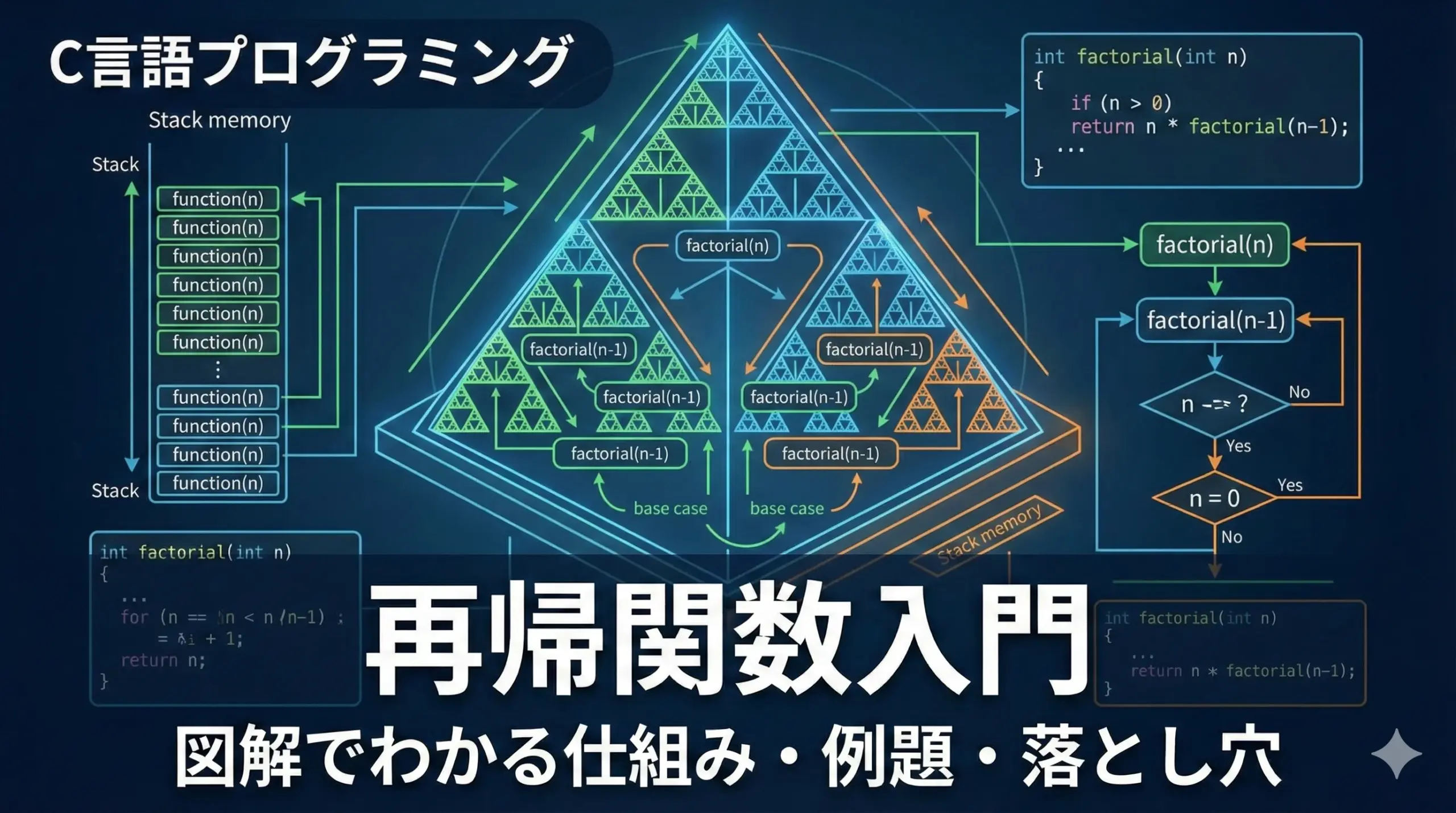【C言語】 再帰関数入門|図解でわかる仕組み・例題・落とし穴
