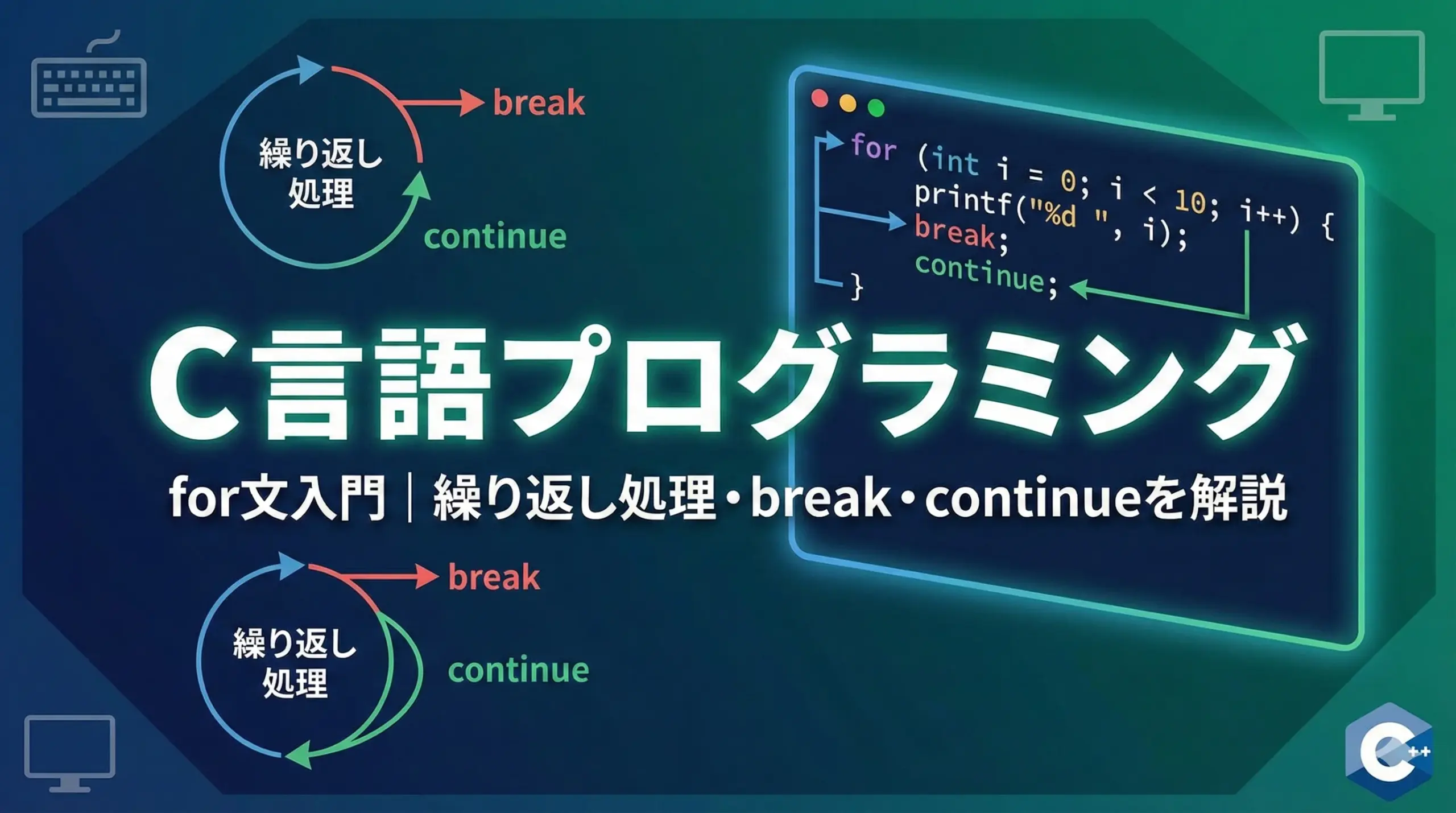 【C言語】for文入門|繰り返し処理・break・continueを解説