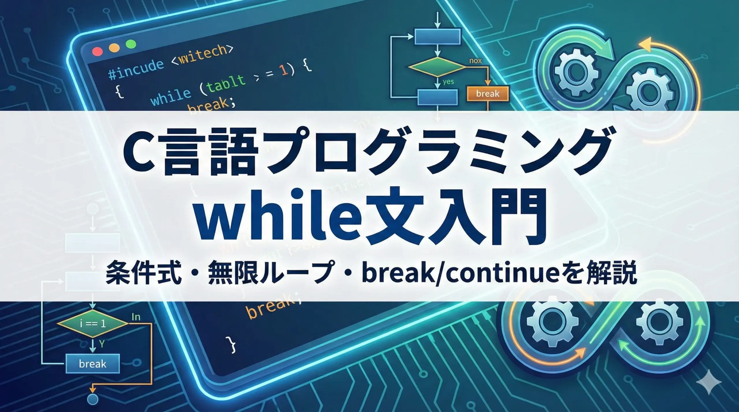 【C言語】while文入門|条件式・無限ループ・break/continueを解説