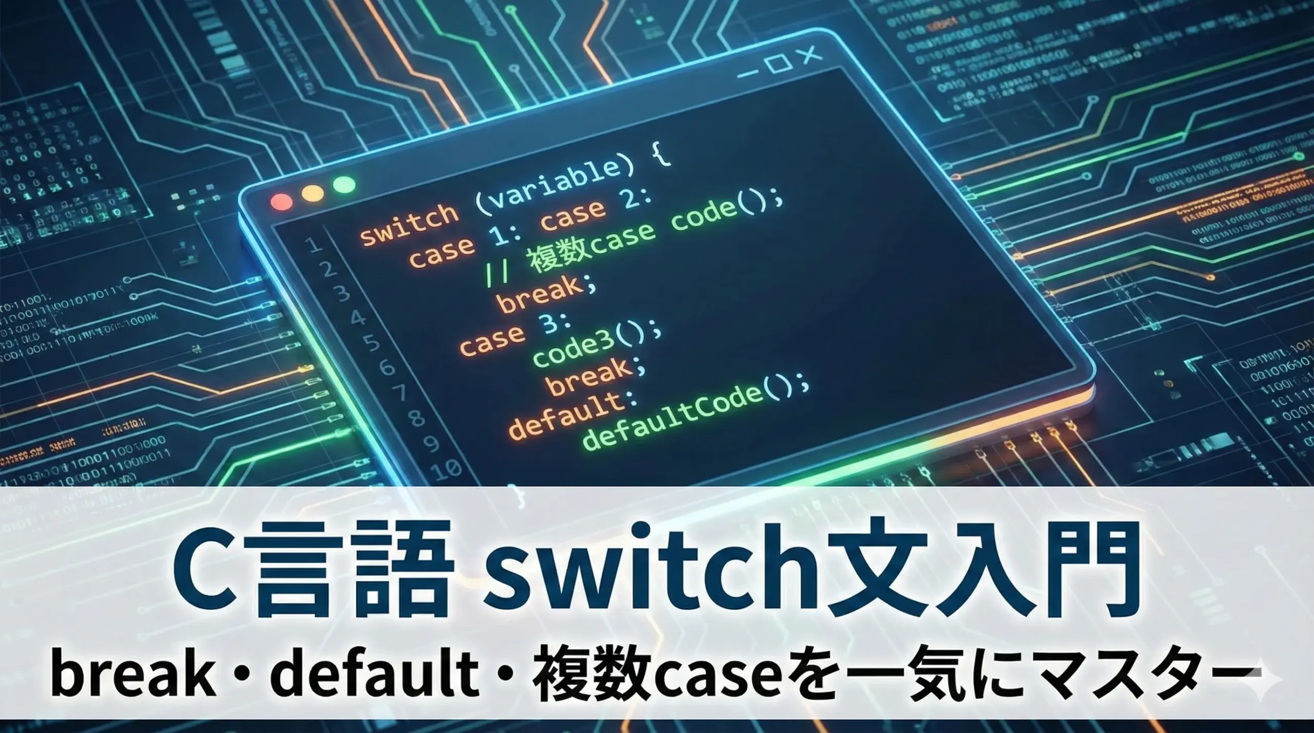 C言語のswitch文は、複数の条件分岐をすっきり書ける強力な構文です。 特にメニュー選択やエラーコード判…