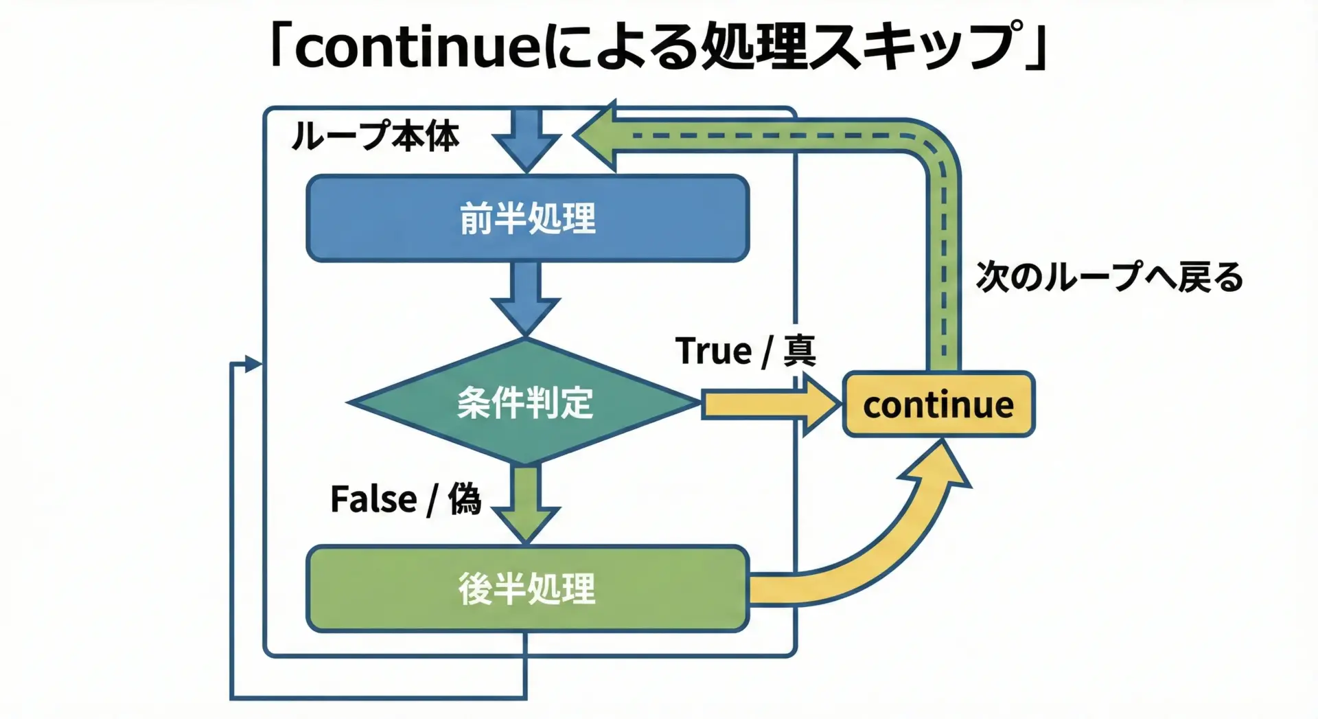 「ループ全体を終えたいのか」「この1回分だけスキップしたいのか」を常に意識することが重要です。