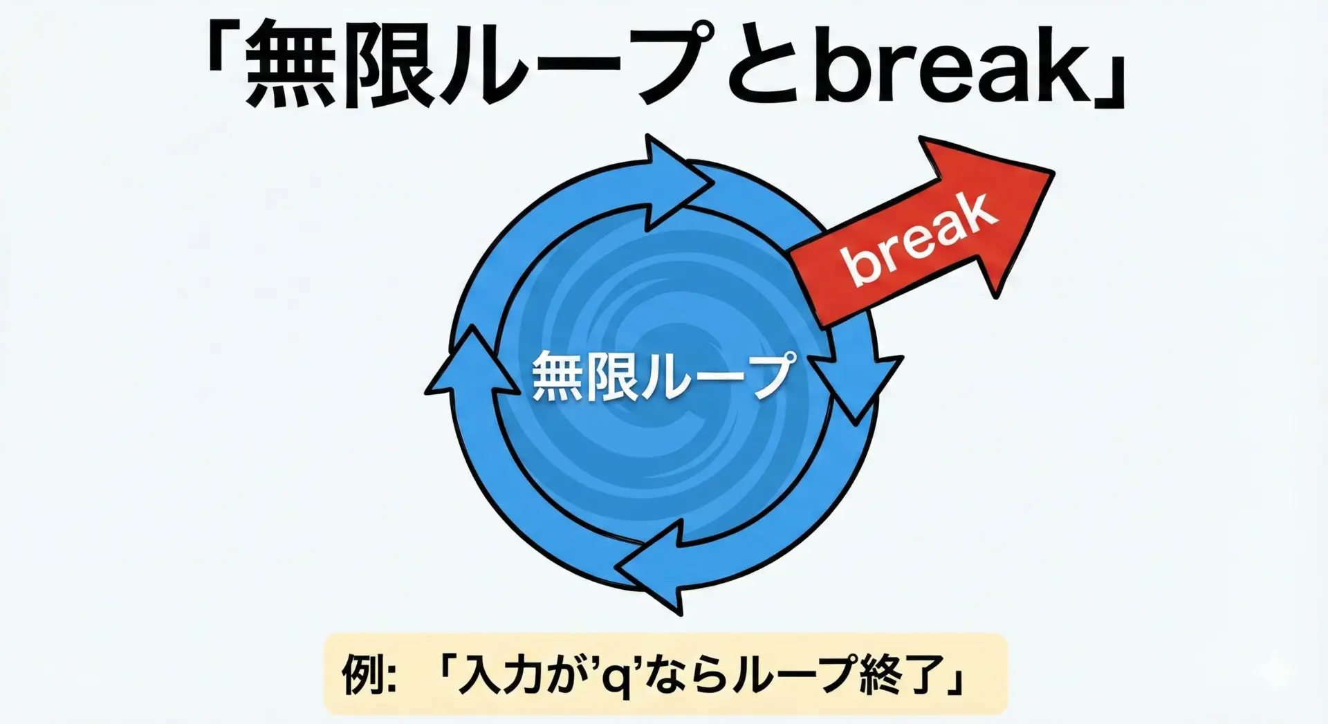 このように、終了条件をif+breakで書くと、複雑な条件でも柔軟に対応できます。