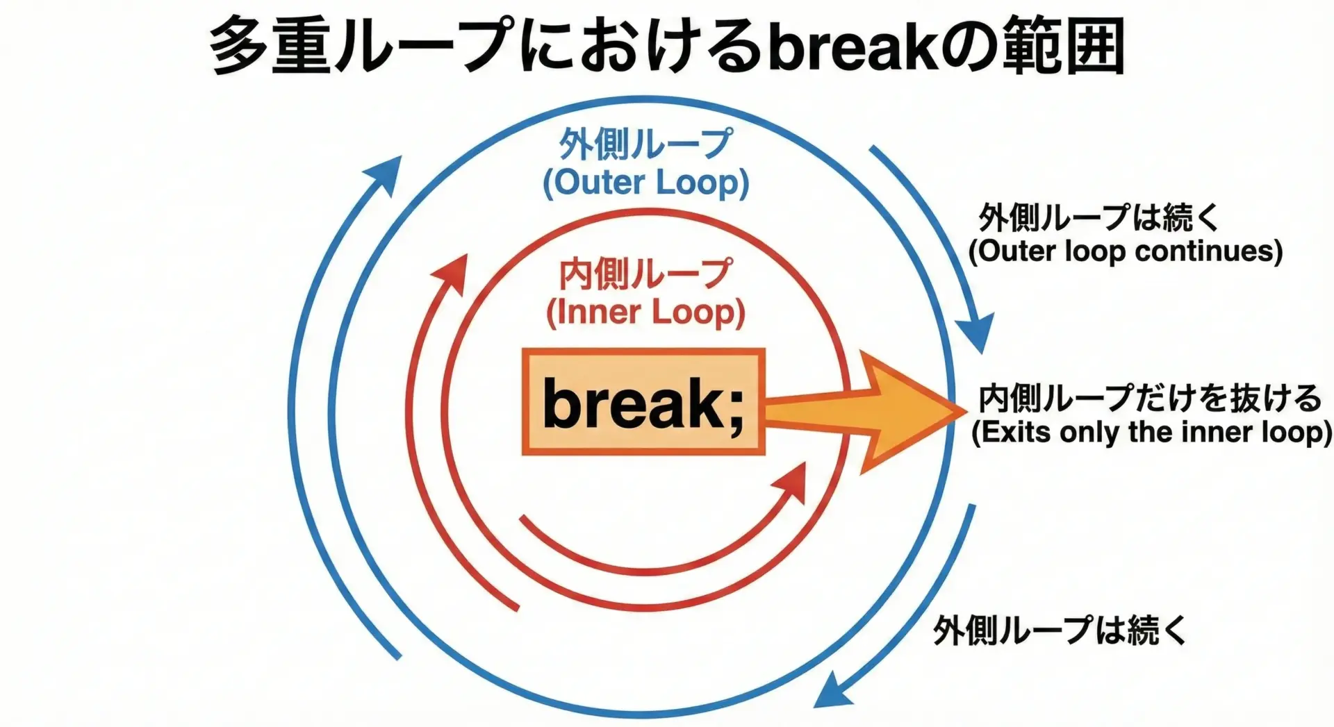 このため、「breakでどこまで抜けられるのか」が混乱しやすくなります。