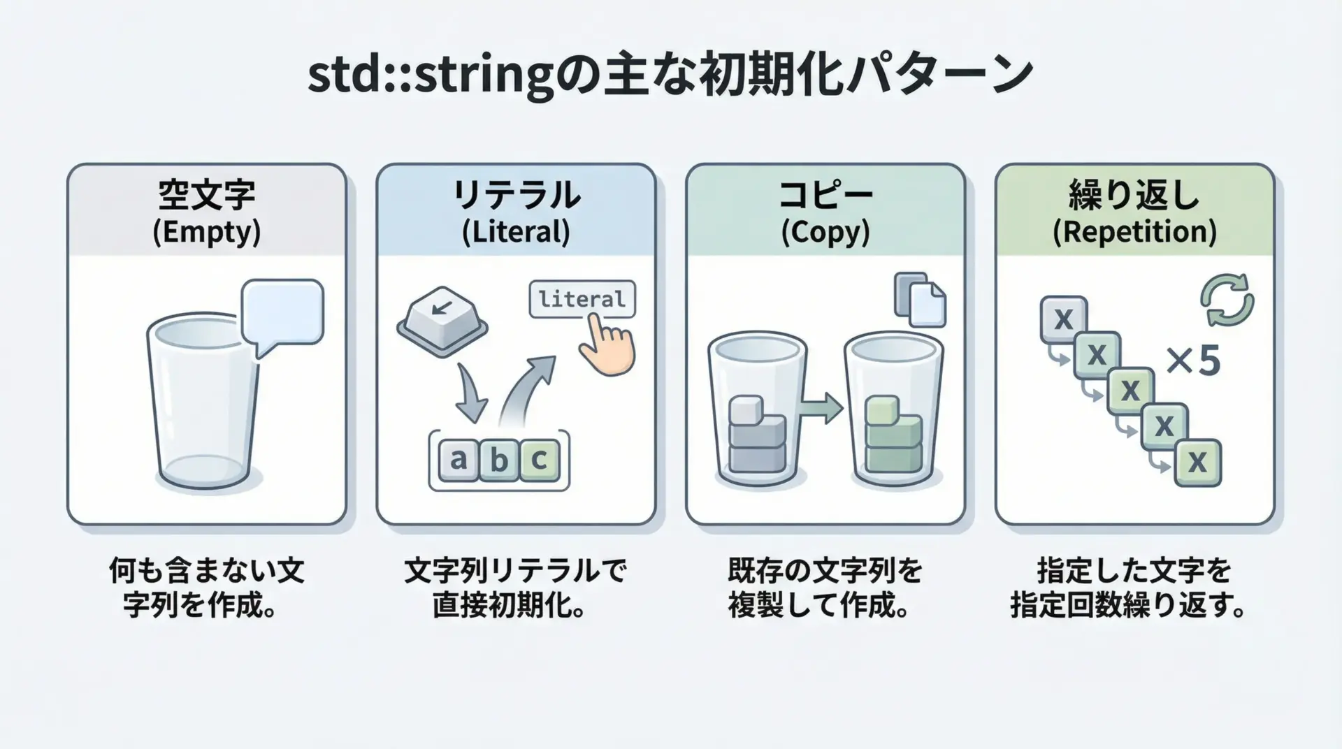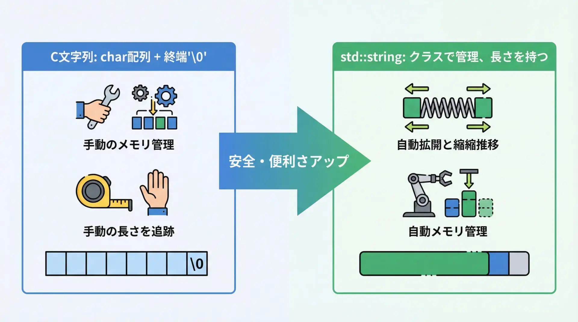std::stringは、C++での文字列処理を安全かつ直感的に行うための中核的なクラスです。
