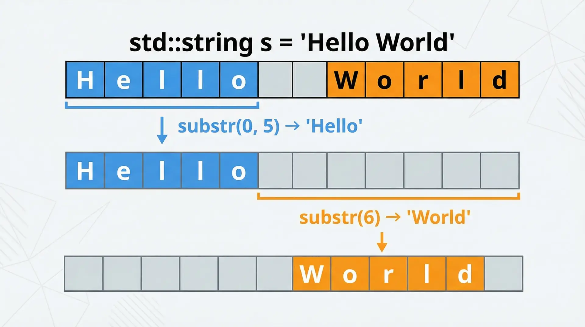 s.replace(6, 5, "CPP");           // "Hello CPP"