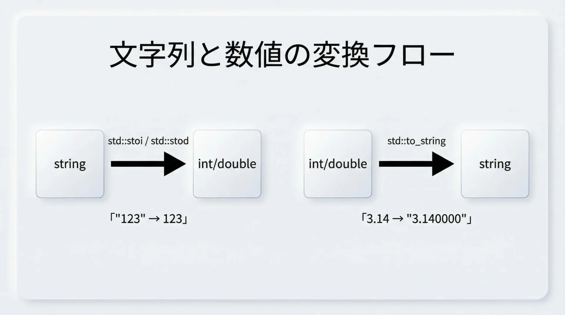 C++11以降では、文字列と数値の変換が非常に簡単になりました。