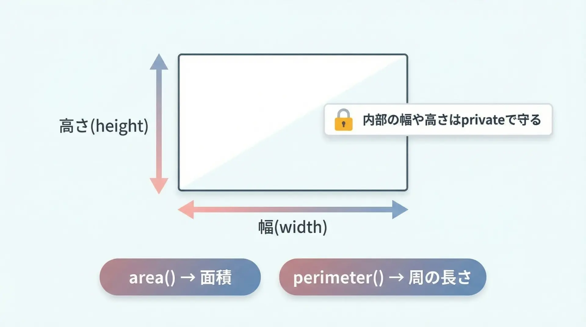 publicで提供 - 面積や周の長さといった「長方形らしい動作」をメンバ関数で表現