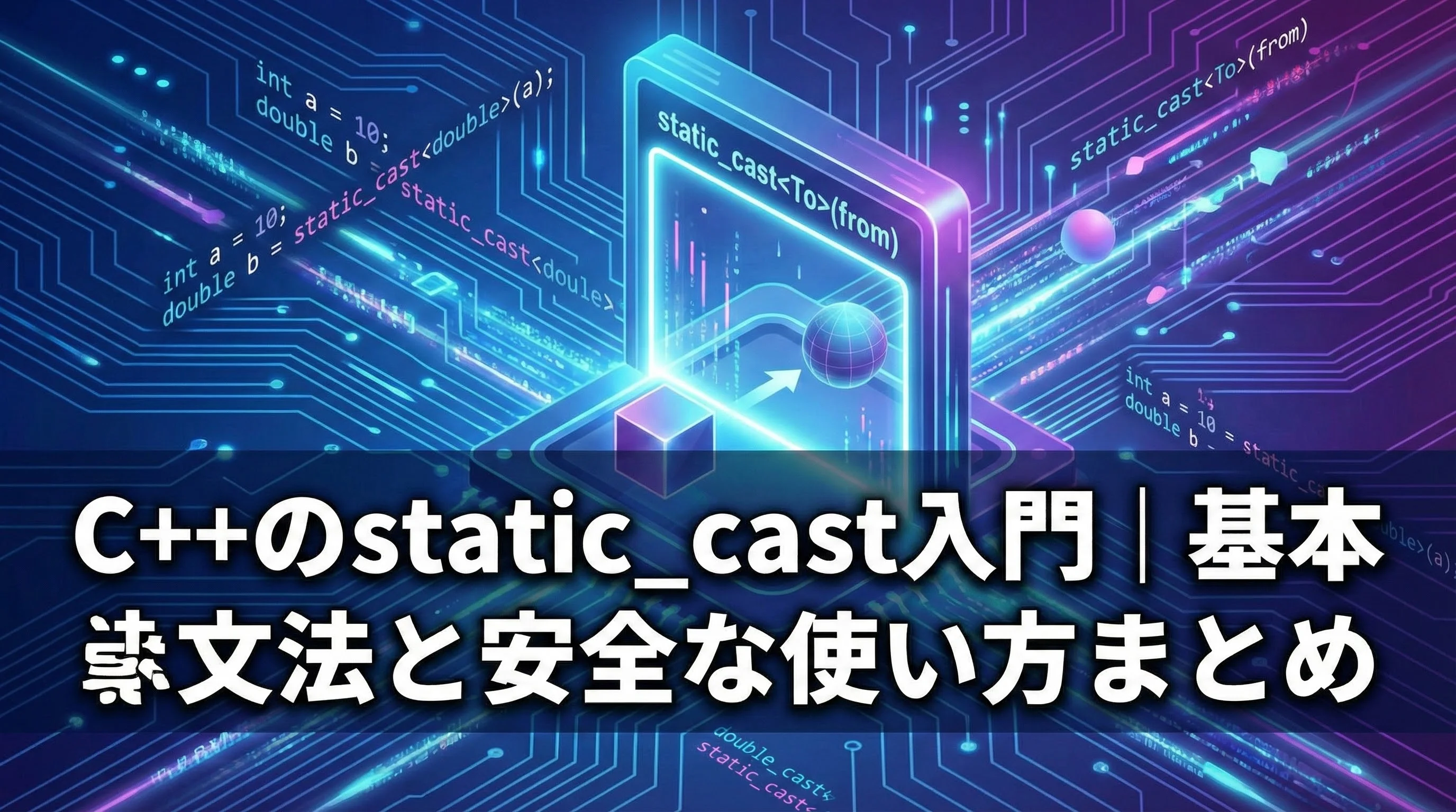 本記事では、C++のstatic_castの基本文法、使いどころ、注意点をコンパクトに整理し、Cスタイルキャストからの書き換え方までまとめて解説します。