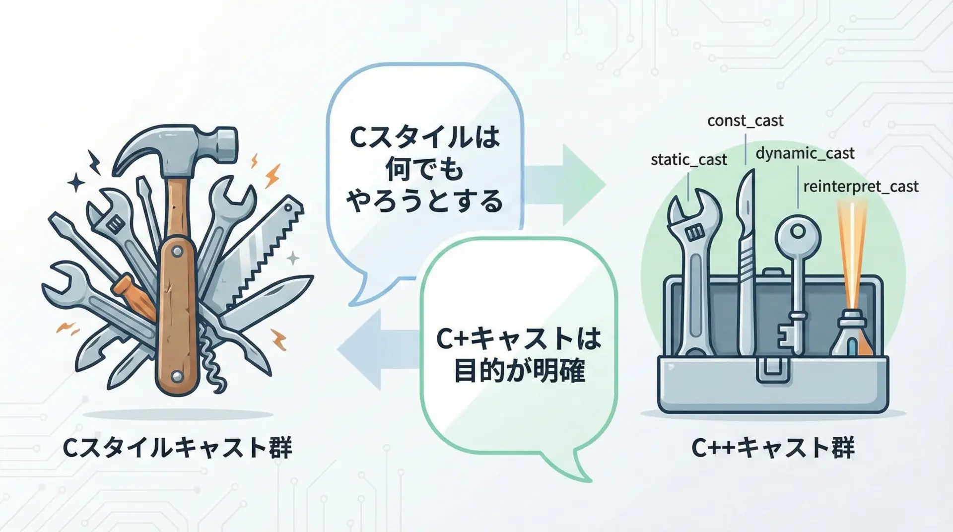 「何をしたいのか」が読み手に伝わるキャストを選ぶのが、読みやすく安全なC++コードへの第一歩です。