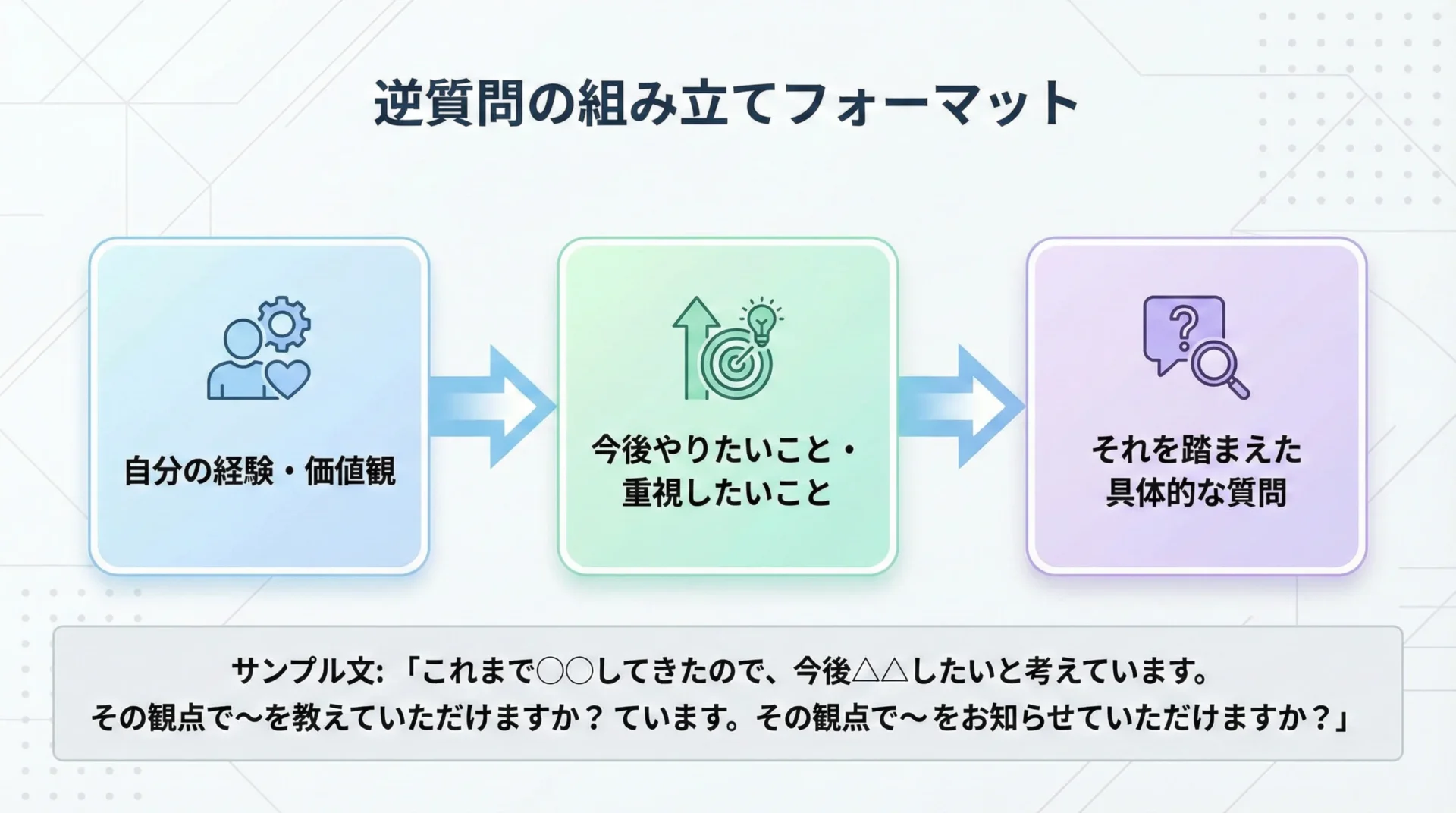 逆質問をカスタマイズするには、次の3ステップで考えると効果的です。