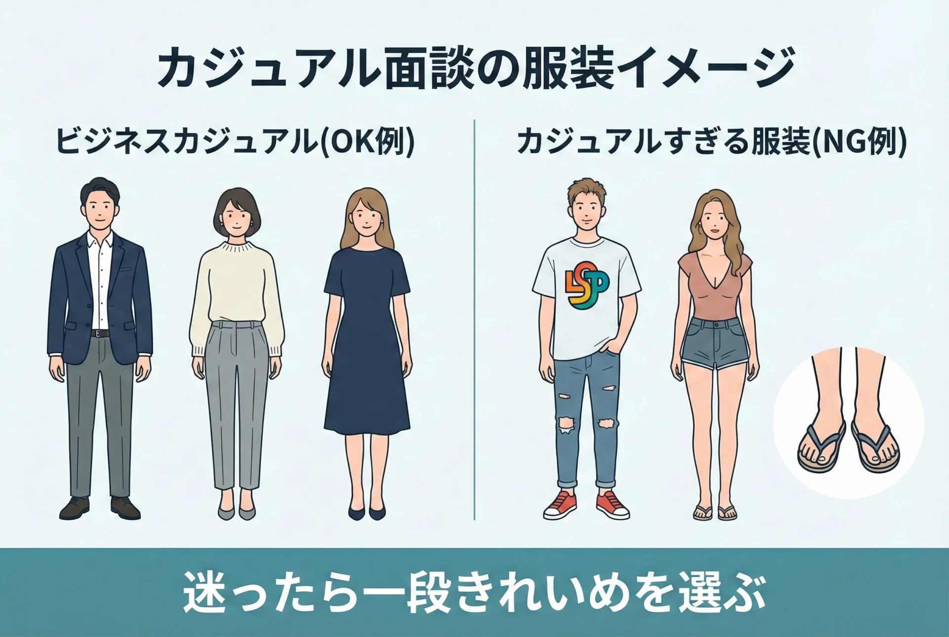 カジュアル面談で最も迷いやすいのが服装です。