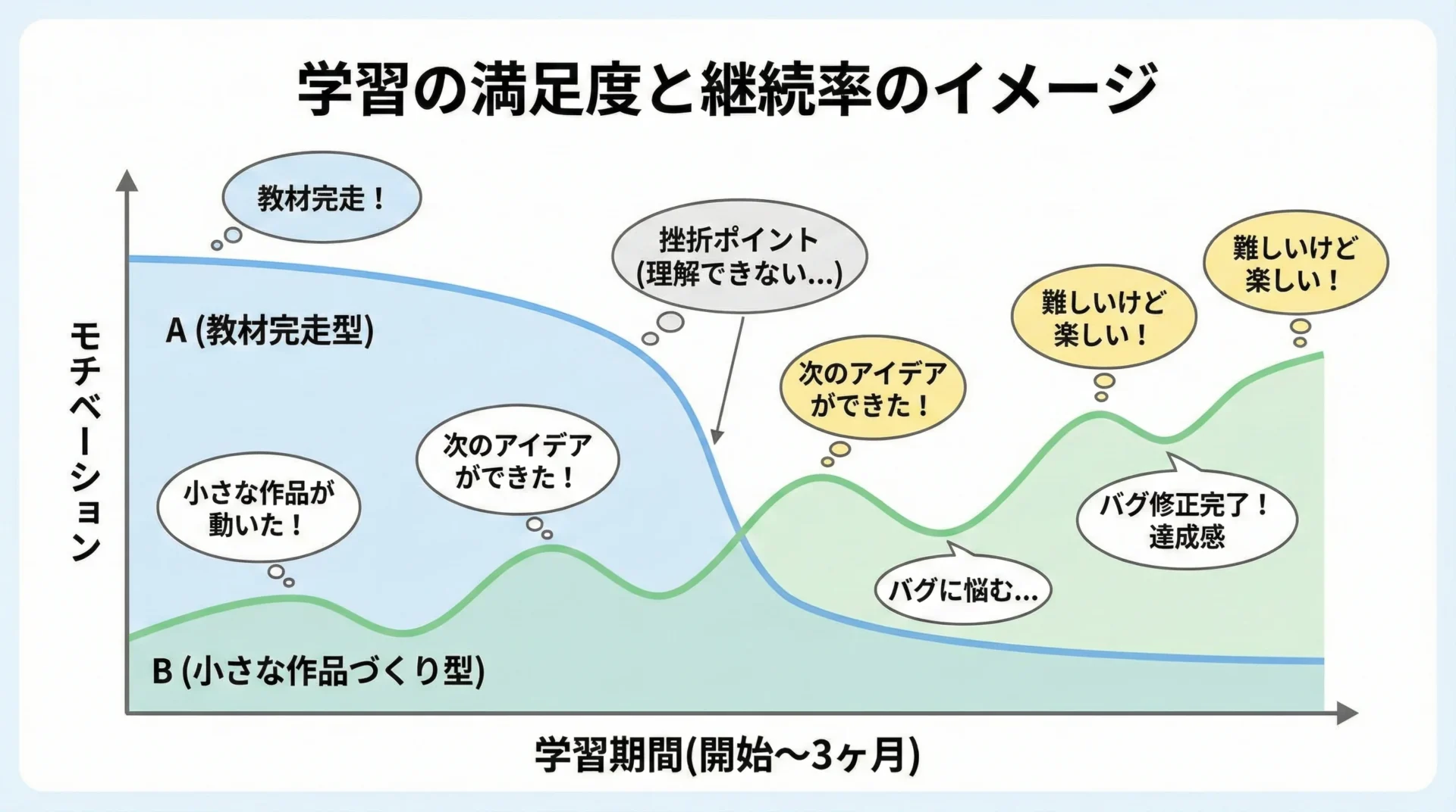 ただし、学び方を間違えると、難易度が一気に「無理ゲー」に跳ね上がるのも事実です。