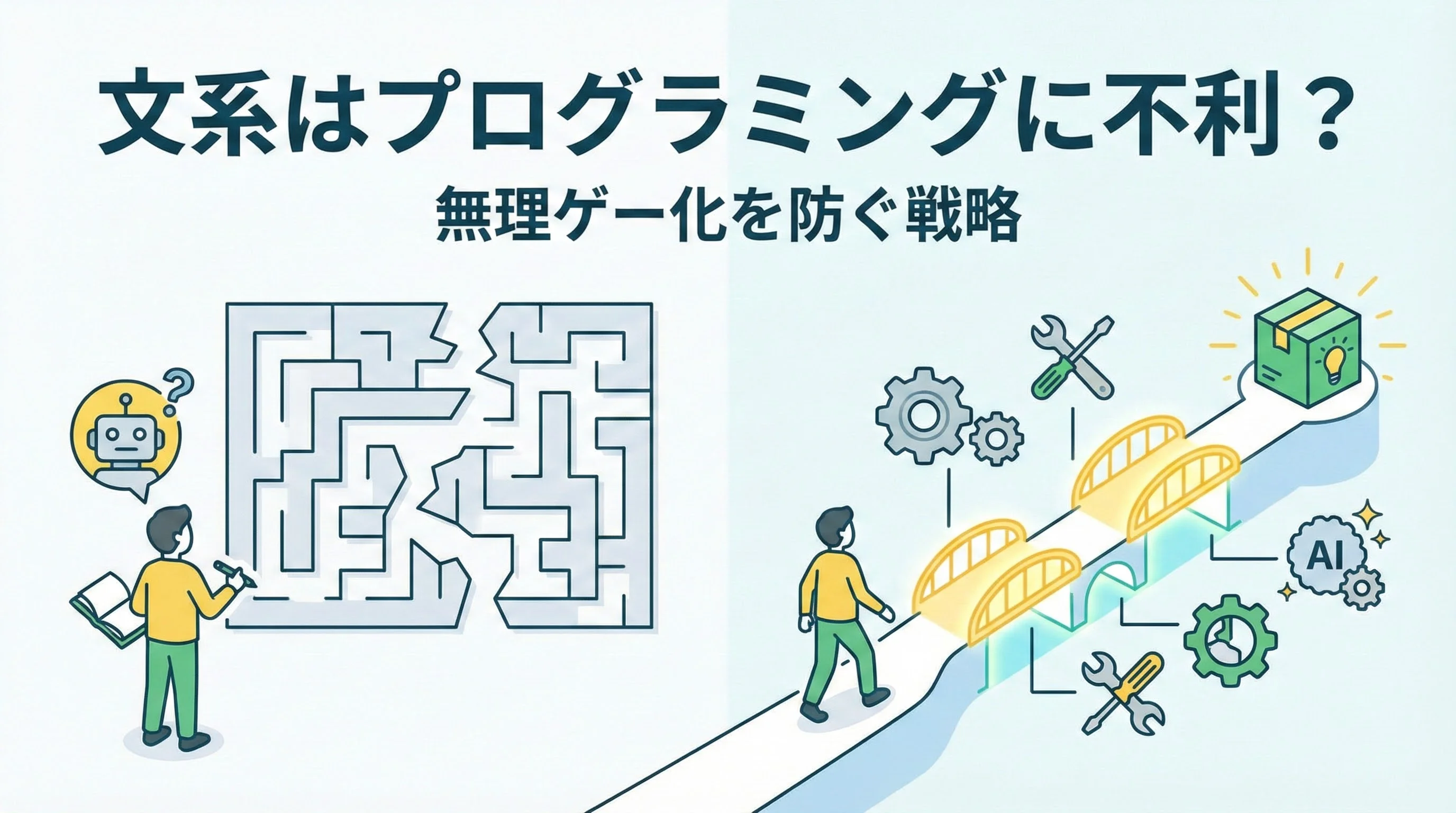 本記事では、文系がプログラミング学習でつまずきやすいポイントを整理し、それを「無理ゲー」にしないための具体的な戦略を解説していきます。