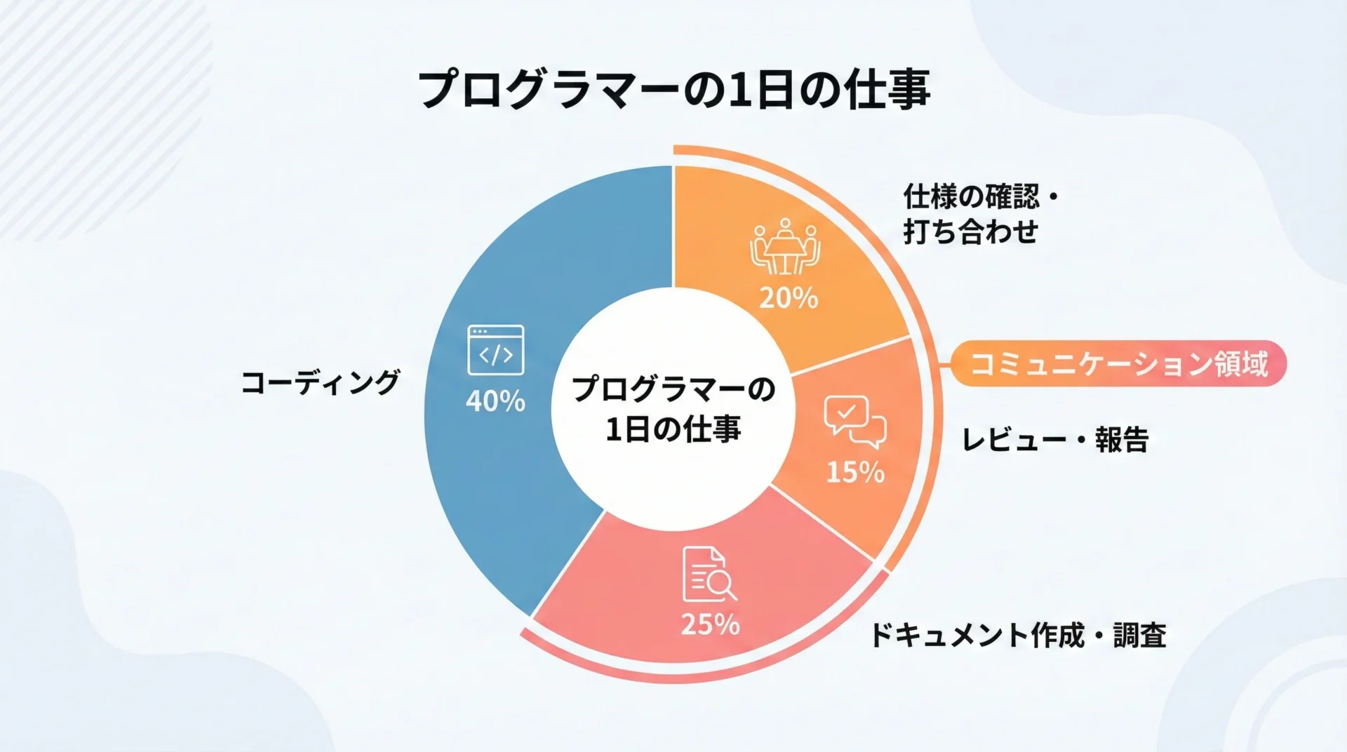 プログラミングの現場では、実はコードを書く時間と同じくらい、あるいはそれ以上に「話す」「書く」場面が多く存在します。