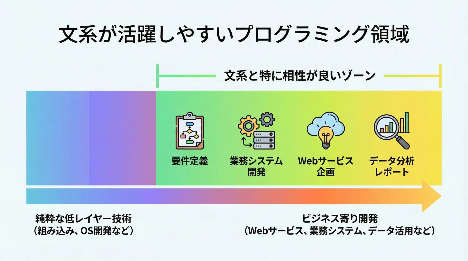 むしろ、現代の開発現場では、文系ならではの言語化力、構造化力、ビジネスやユーザーへの感度が大きな強みになります。