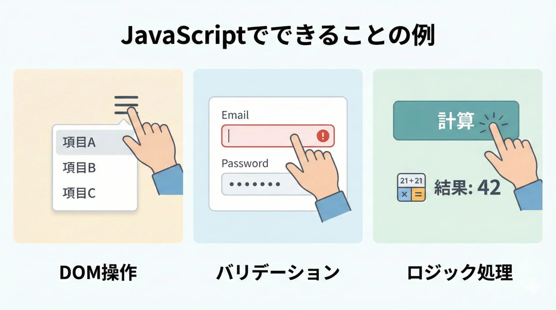 - DOM操作(HTML要素をJavaScriptから操作する)