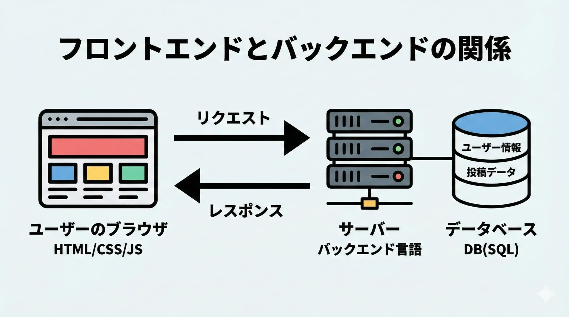 フロントエンド側の基礎を押さえたら、次は「サーバー側」(バックエンド)の学習に進みます。