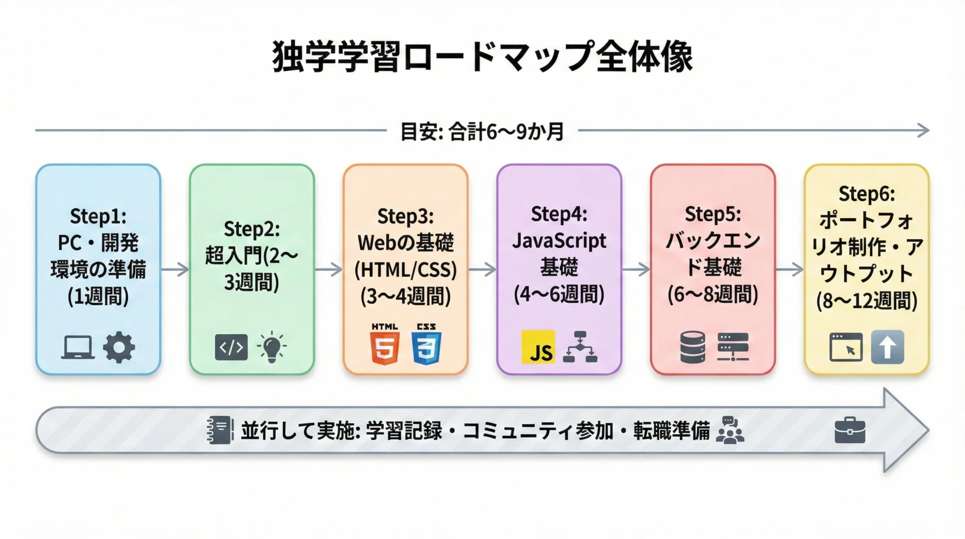 未経験からエンジニアを目指す独学の道は、決して楽ではありませんが、正しい順番で学べば、再現性の高いプロセスでもあります。