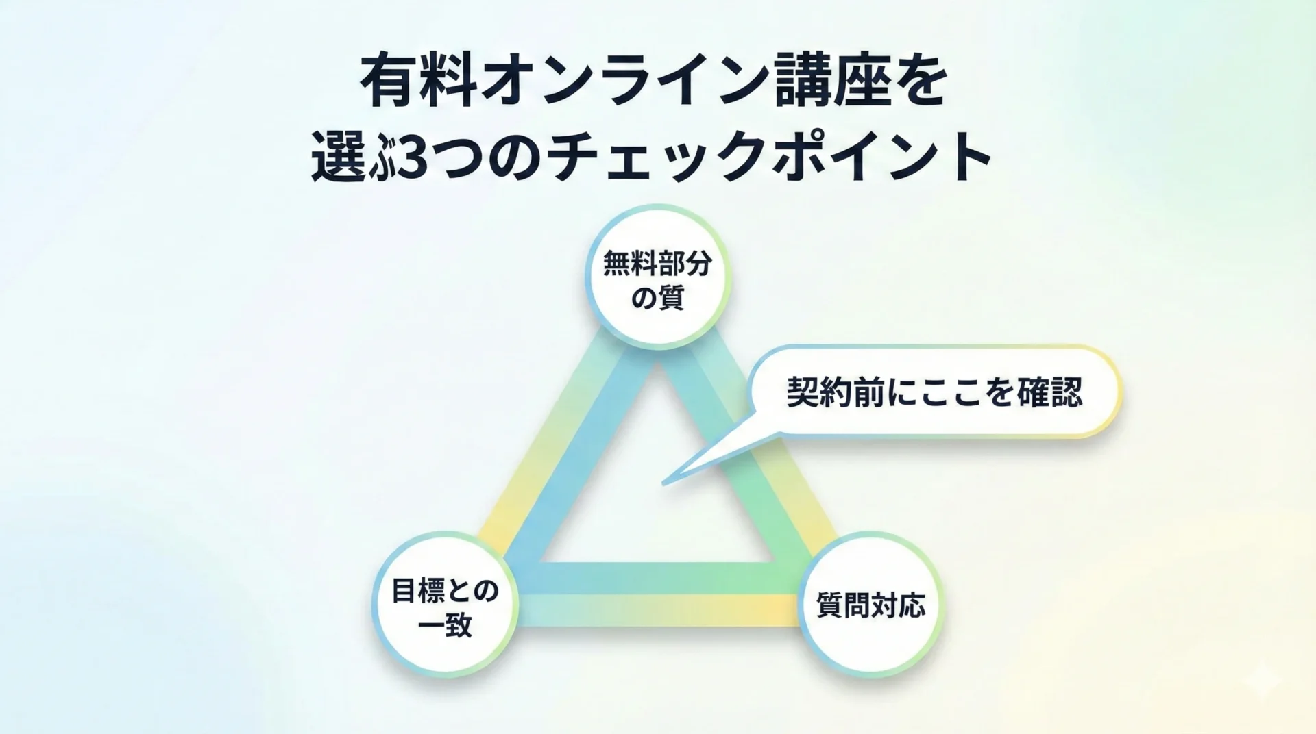 これにより、必要以上の講座購入を避け、1つひとつの教材から最大限のリターンを得られるようになります。