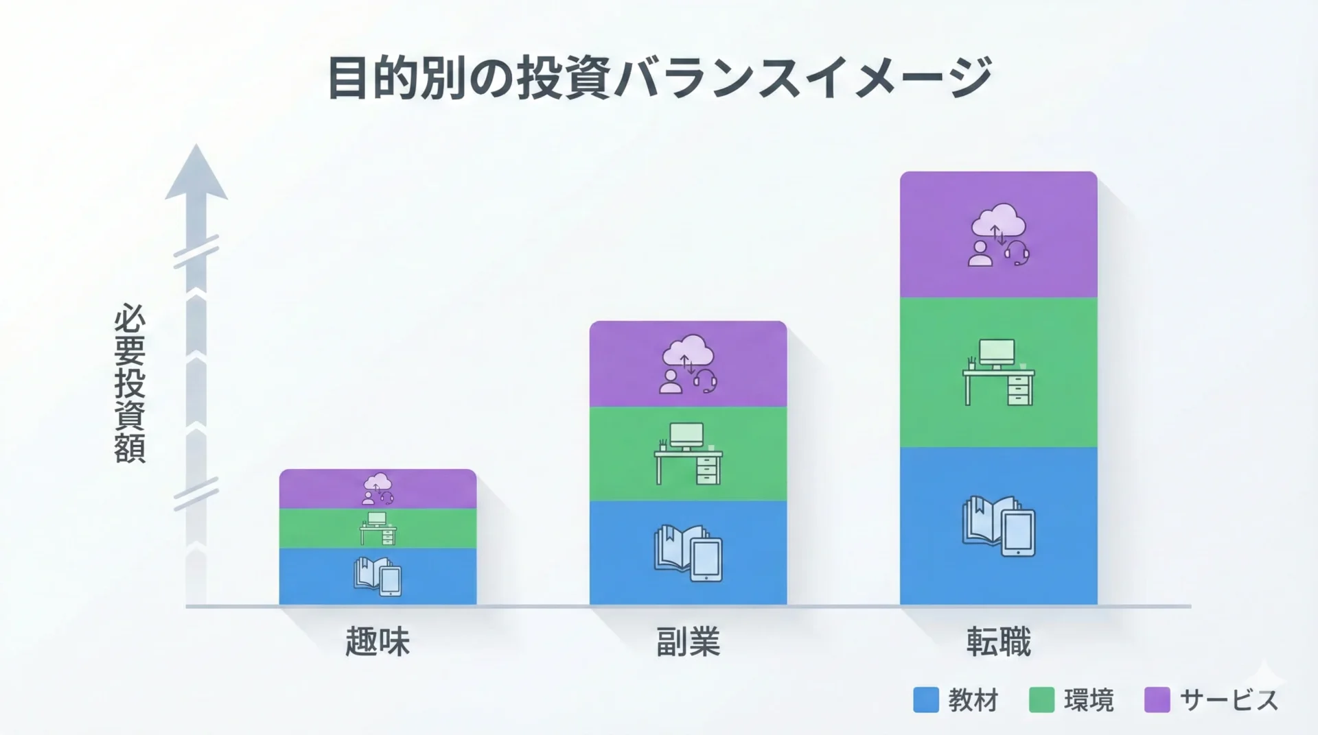 目的によって、必要な学習範囲も投資額も変わります。