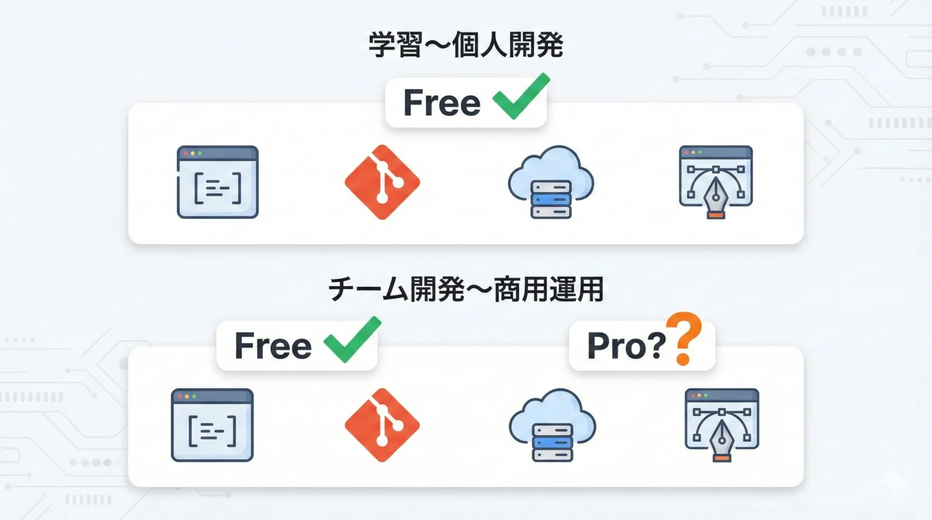 その判断基準は「無料プランの制約が、学習や開発のボトルネックになっているかどうか」です。