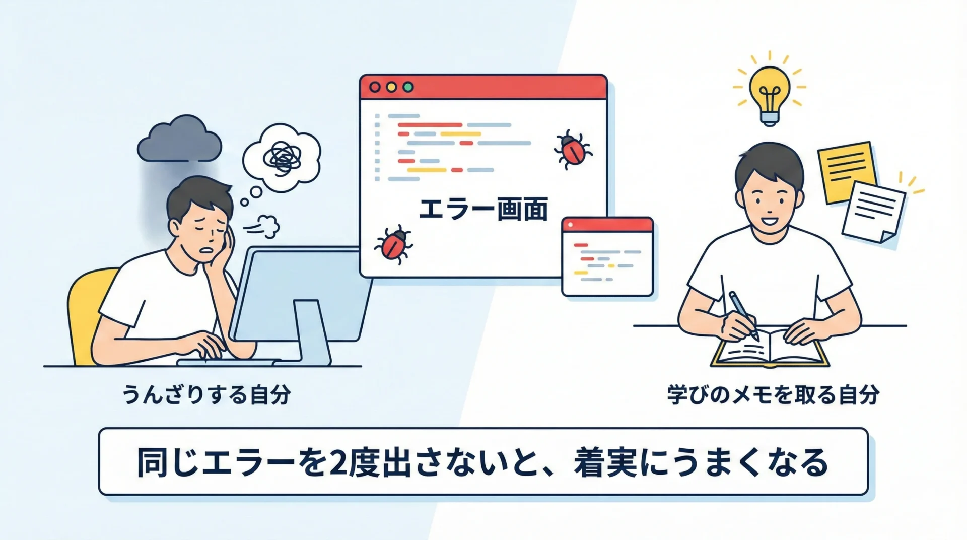 この「小さく区切って進める」やり方は、エラーが出たときに原因を特定しやすく、心理的な負担も減るというメリットがあります。