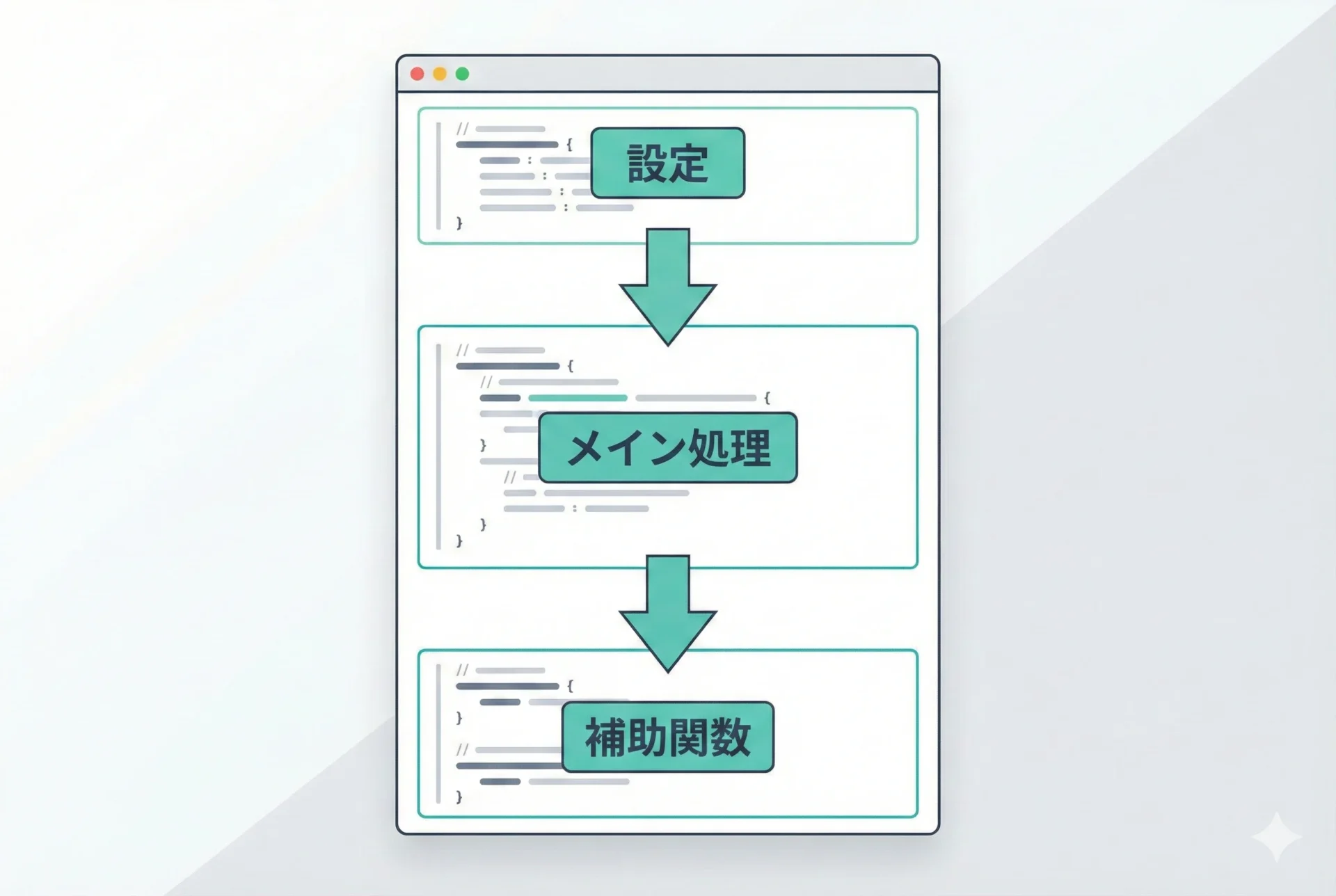 • 1ブロックごとに「このコードは何をしているのか」を一文でメモする
