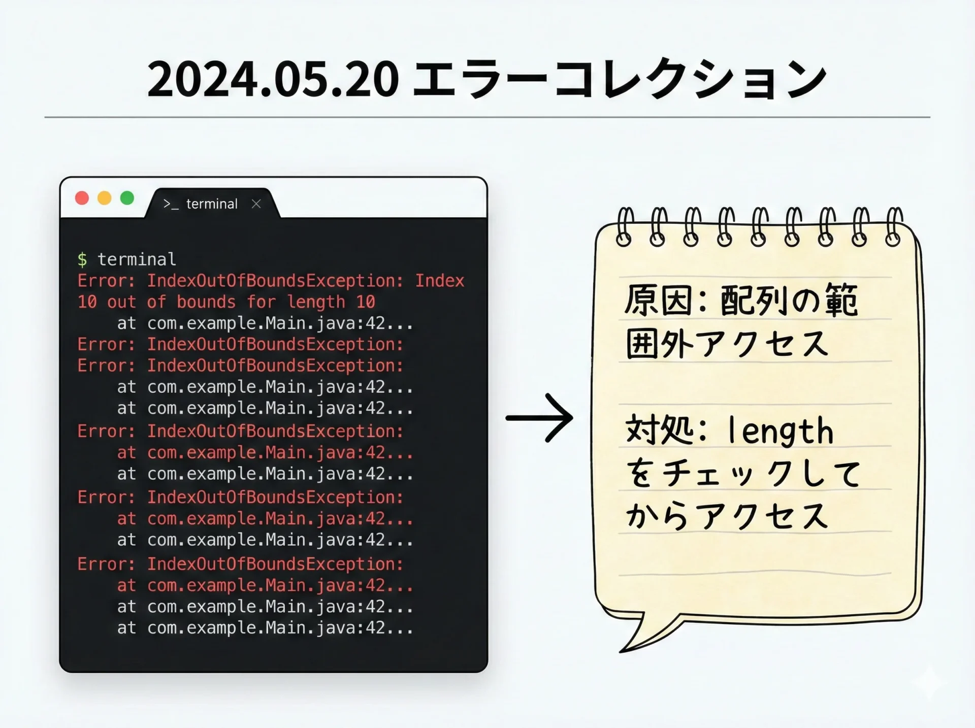 同じようなエラーに再び遭遇したとき、過去の自分のノートが「ミニStack Overflow」のような役割を果たしてくれます。