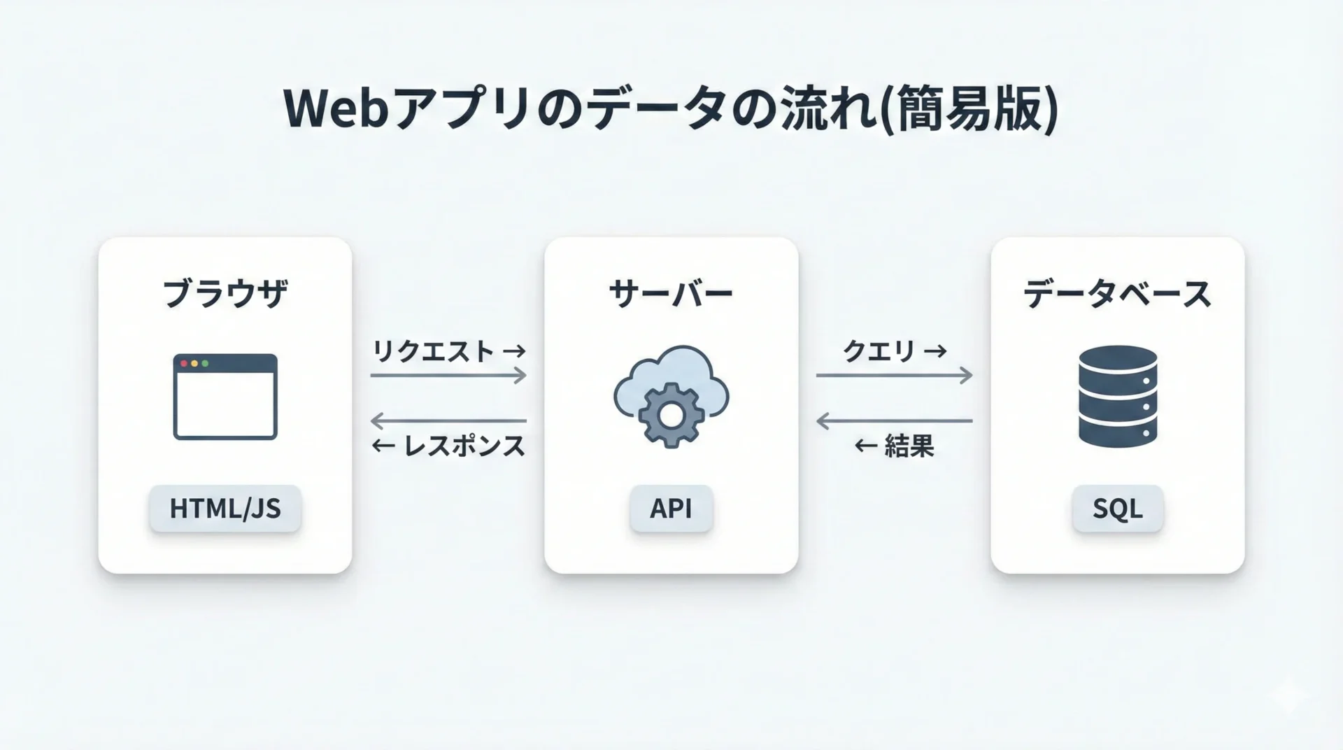 図解とテキストがセットになることで、「ブラウザ」「サーバー」「DB」という用語が単なる言葉ではなく、具体的なイメージとして頭に残るようになります。