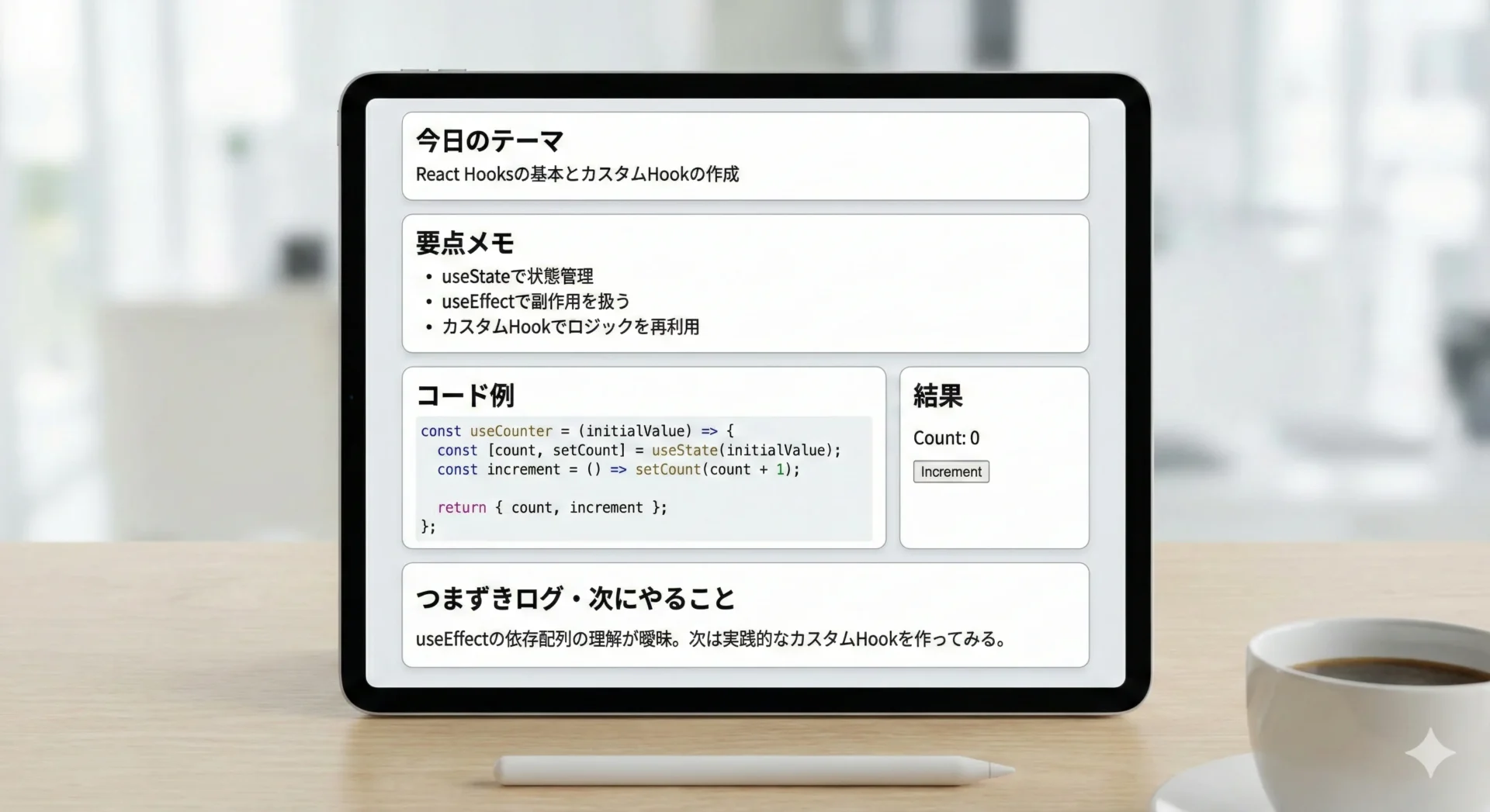 そのためには、アプリ選びやフォルダ構成だけでなく、1ページのテンプレート設計、コードとノートの連携方法、エラーの資産化、そして習慣化の工夫が重要です。